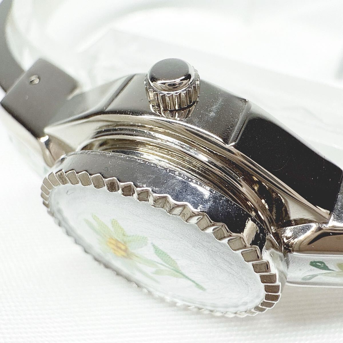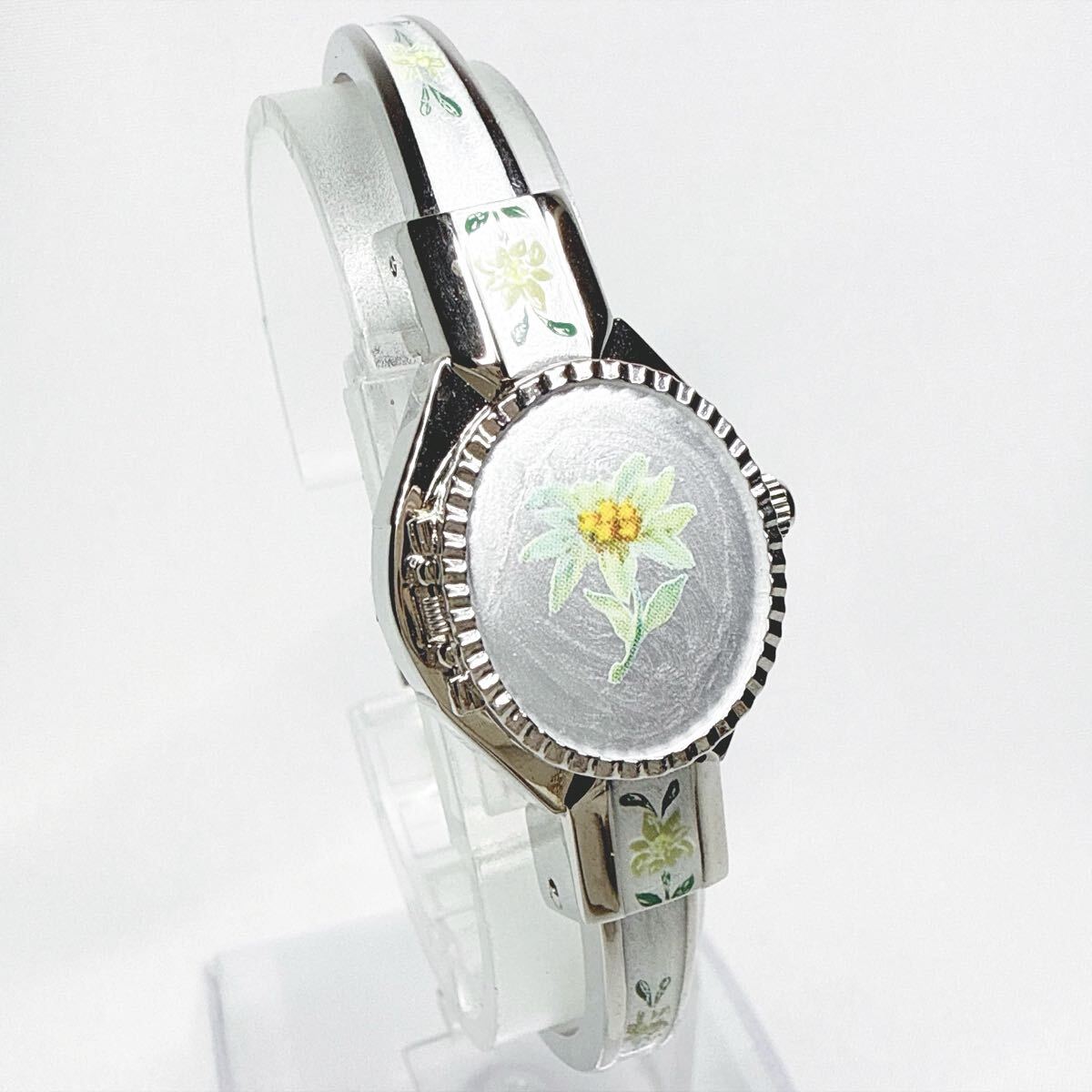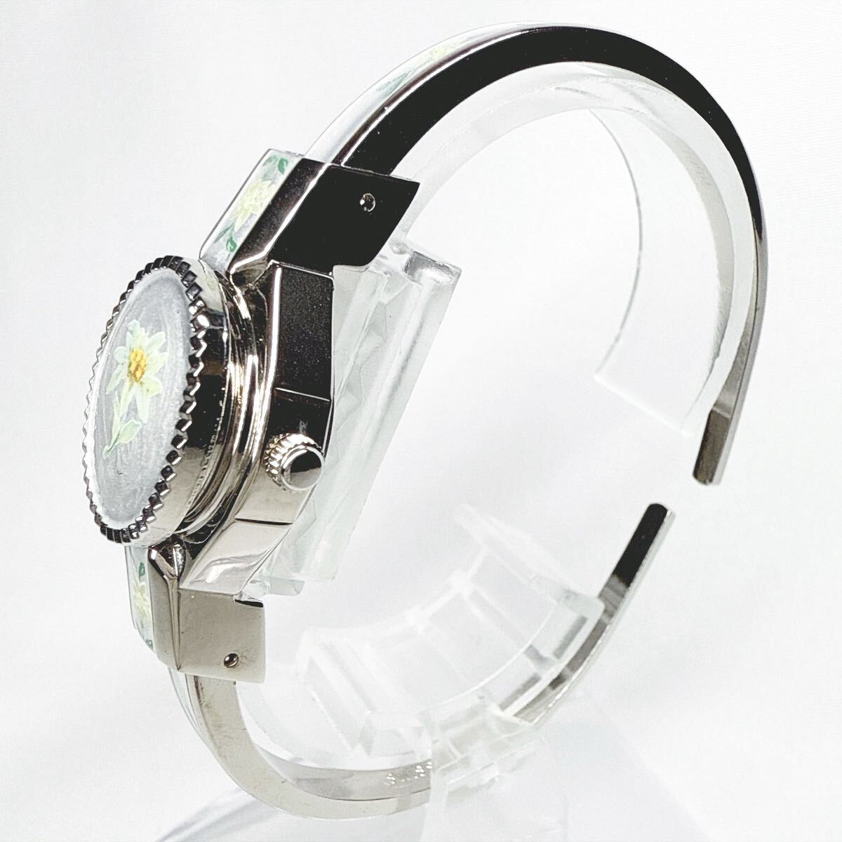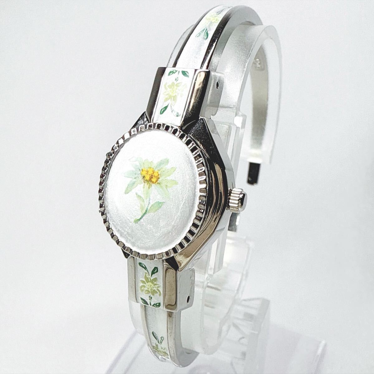 稼動品 Andre Mouche アンドレムッシュ バングルウォッチ クオーツ 花柄 シルバー スイス製 レディース アンティーク 付属品有り