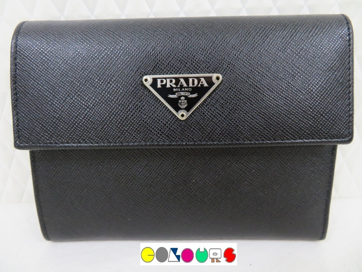 〔COLOURS〕 未使用・長期保管品■3つ折り財布■サフィアーノ■ブラック■PRADA