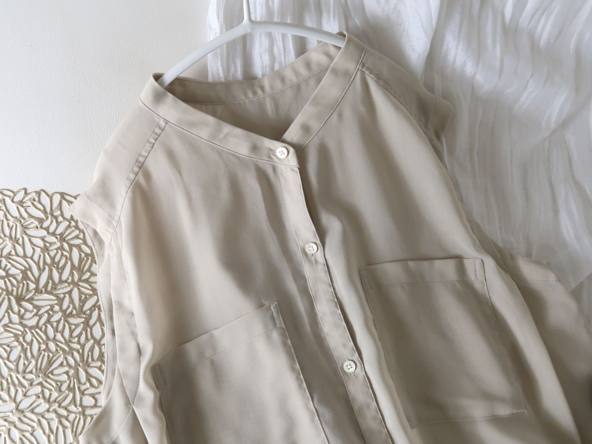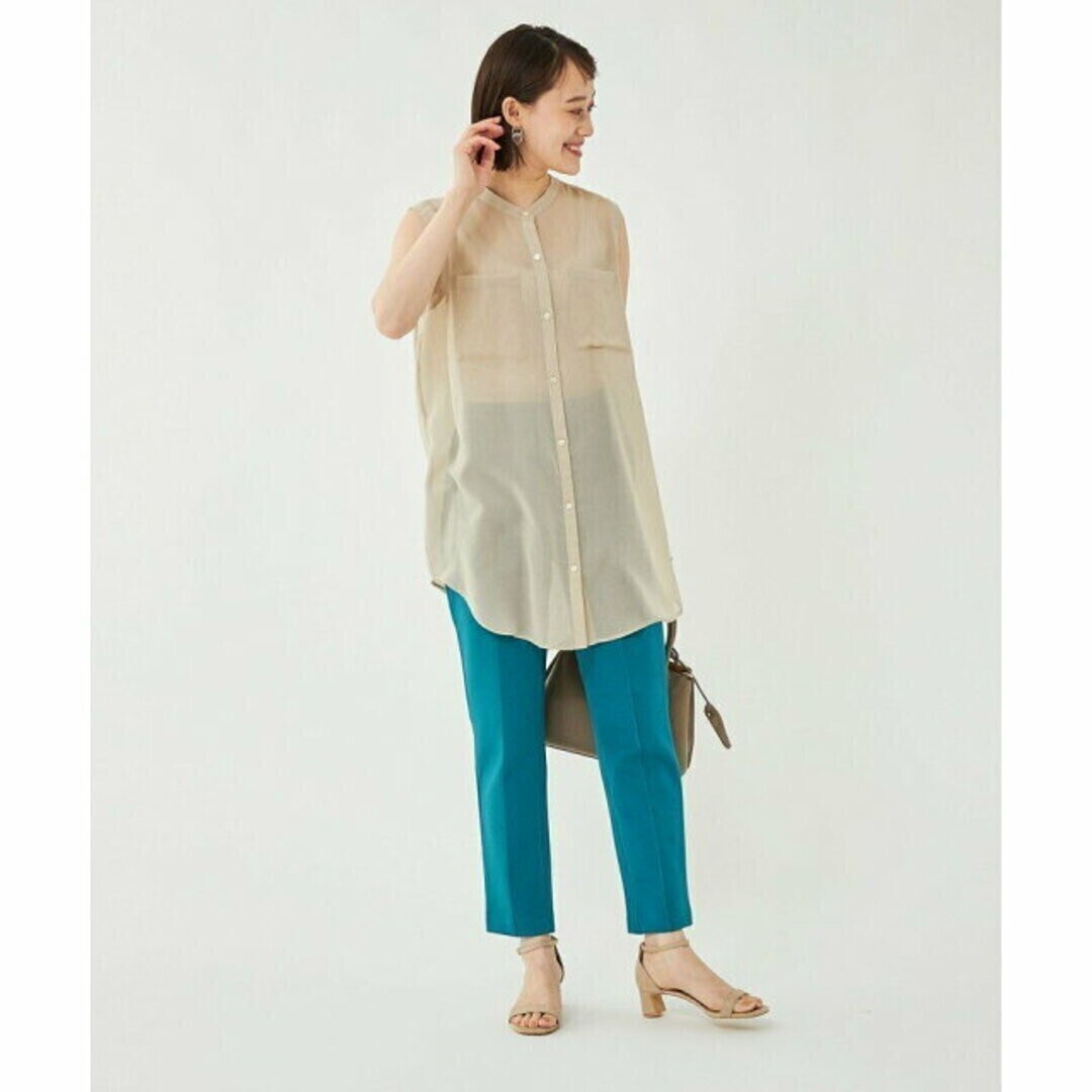 ユナイテッドアローズ/green label relaxing☆洗える シアー バンドカラー ノースリーブ シャツ☆M-B 4863