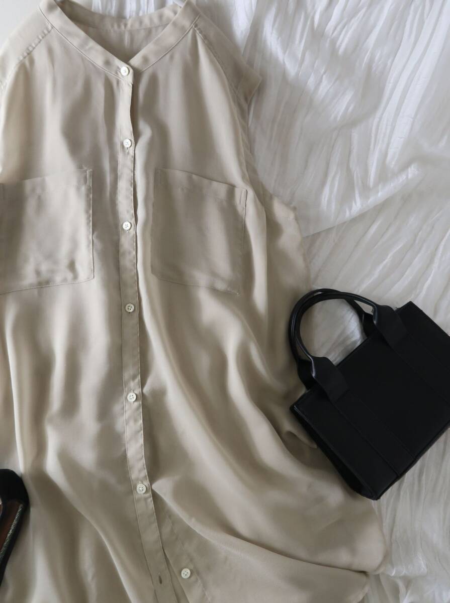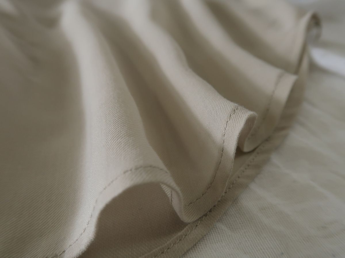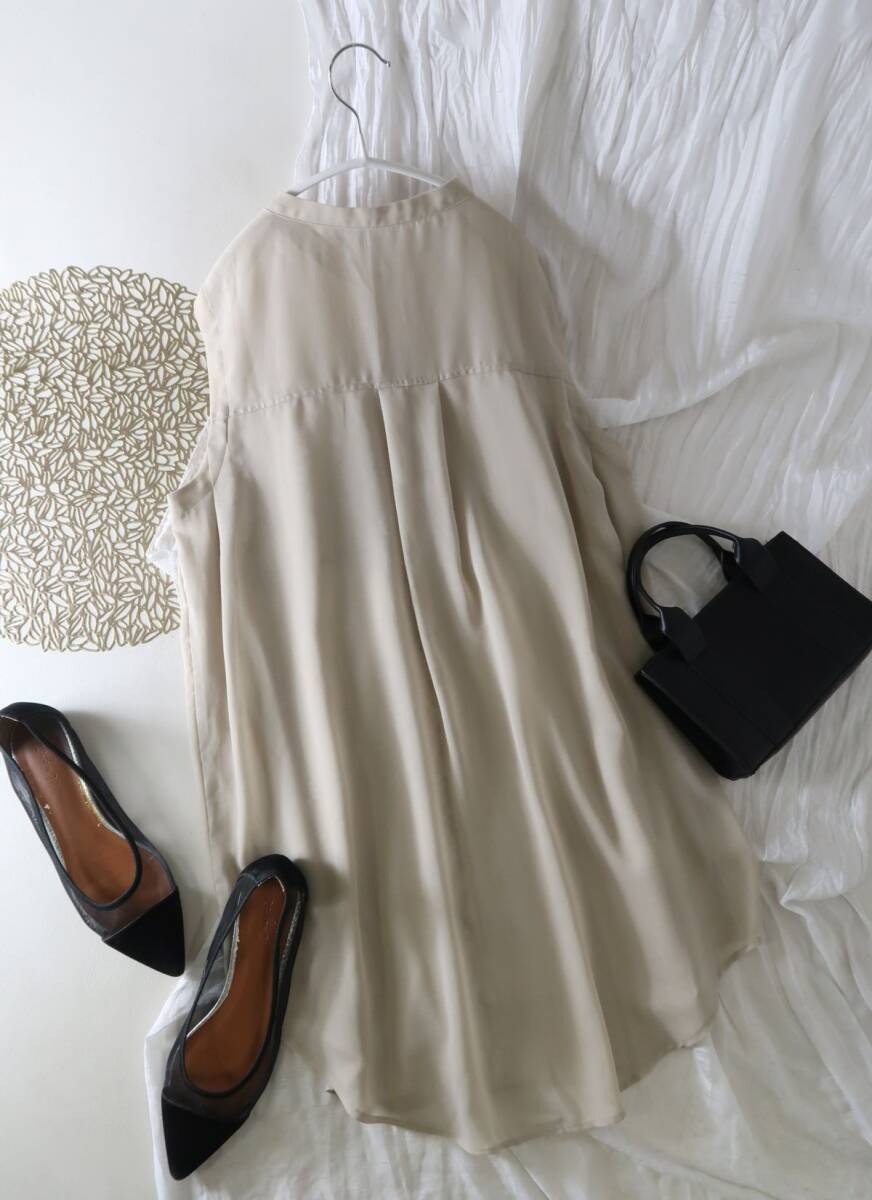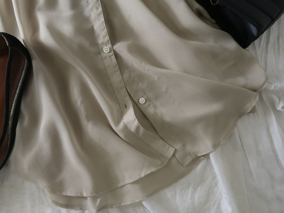 シアー感のあるツイル素材。 程よい透け感で、軽やかな印象で着用頂けます。