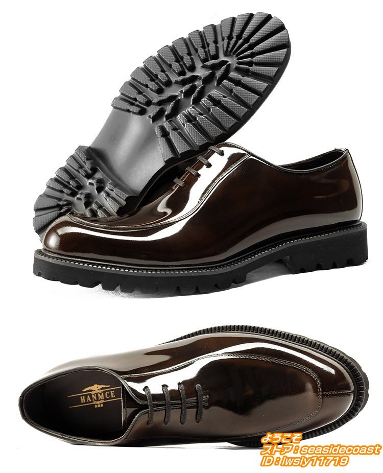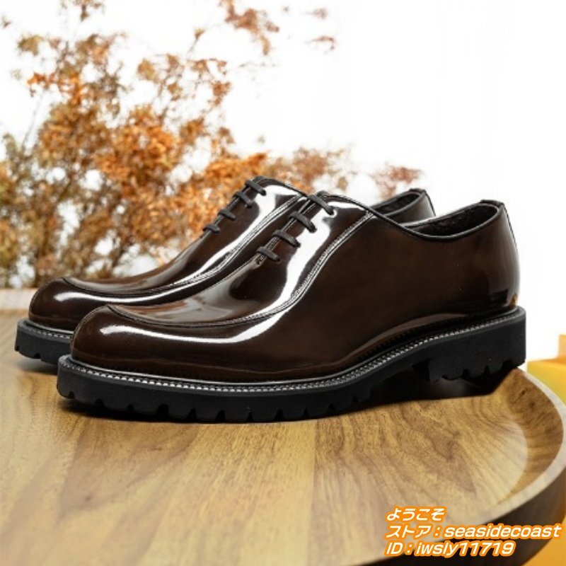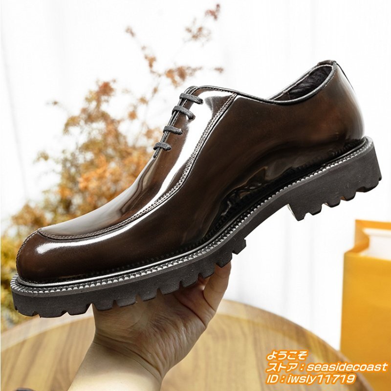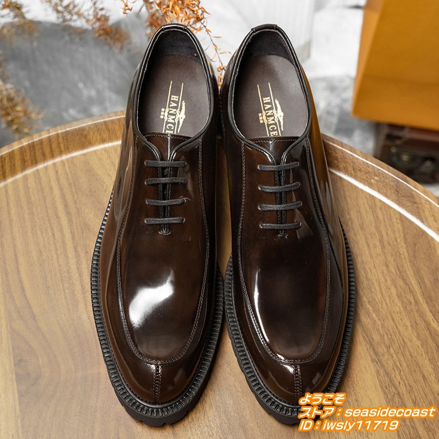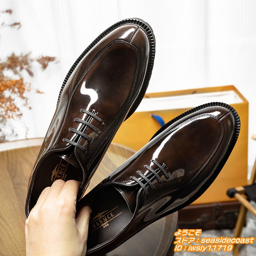 超希少★定価10万 高級牛革 レザーシューズ 本革 ビジネスシューズ 職人手作り彫り 紳士靴 フォーマル 革靴 ドレス靴 新品 珈琲色 24.5cm