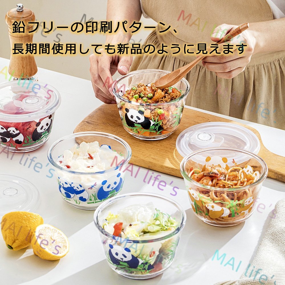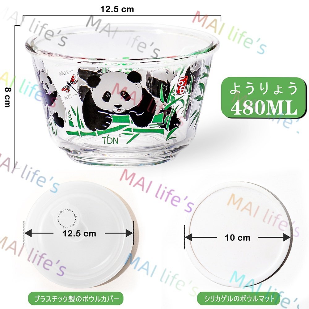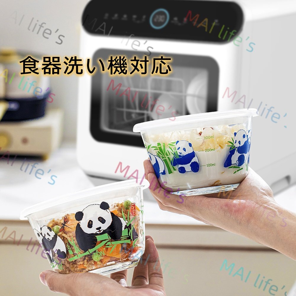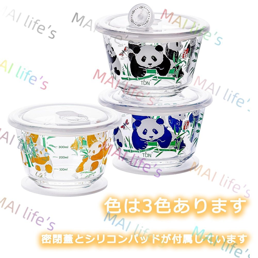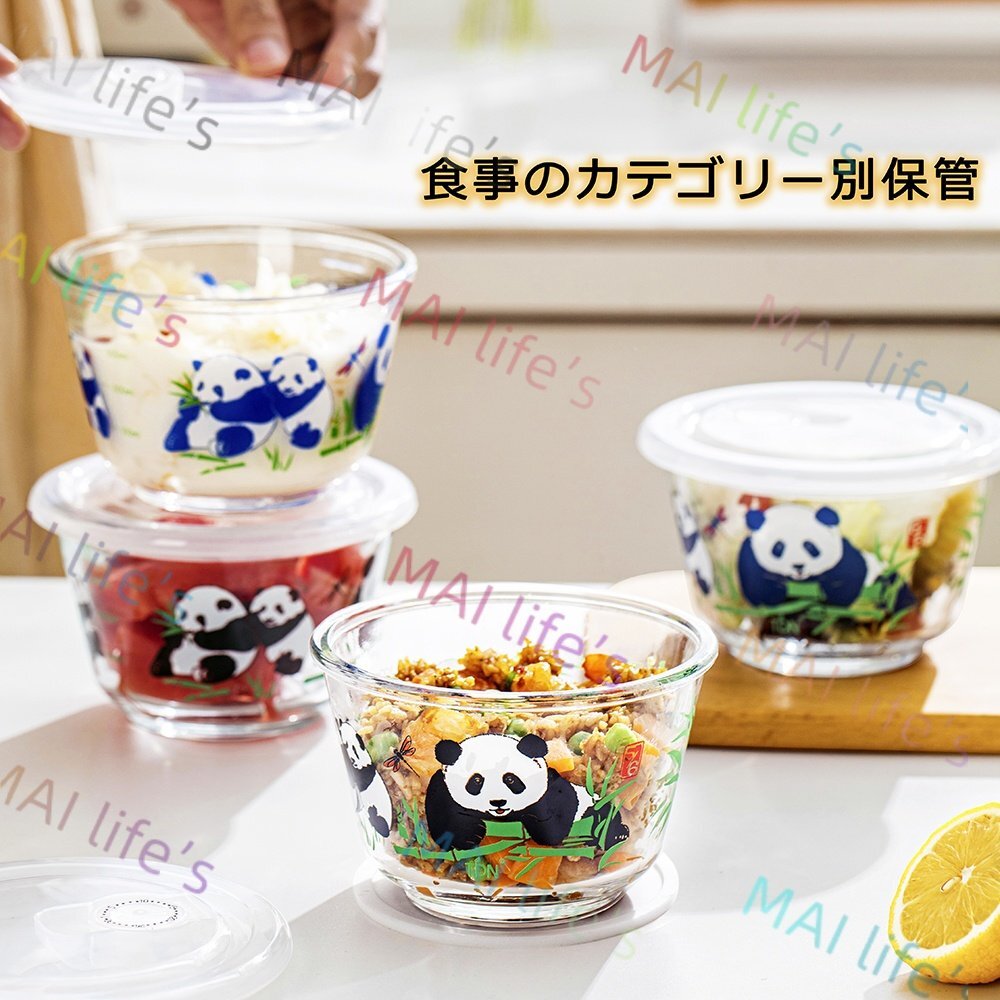 パンダ 耐熱ガラス容器 保存容器 ぱんだ 480ml 電子レンジ対応 オーブン 食器洗い機可 新生活 ギフト 丸型 可愛い 耐熱容器 BPAフリー 家族 結婚祝い 誕生日 結婚記念日 (3個セット、Panda)