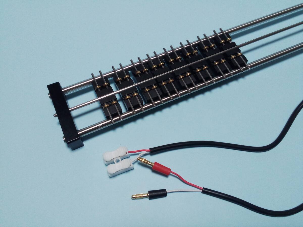 HOゲージ車両走行台です。長さ約500mm、動輪8軸まで対応しています。