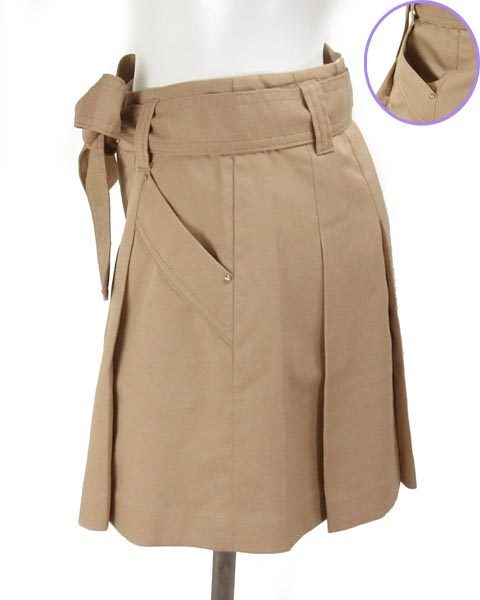 | コメント | プリーツの入ったフェミニンなショート丈のスカートパンツ。 リボンベルトが甘目コーディネートで活躍してくれます。 Tシャツスタイルからニットやブラウスなど幅広く コーディネートして頂けます。 コーディネートしやすいキャメルベージュ。  |