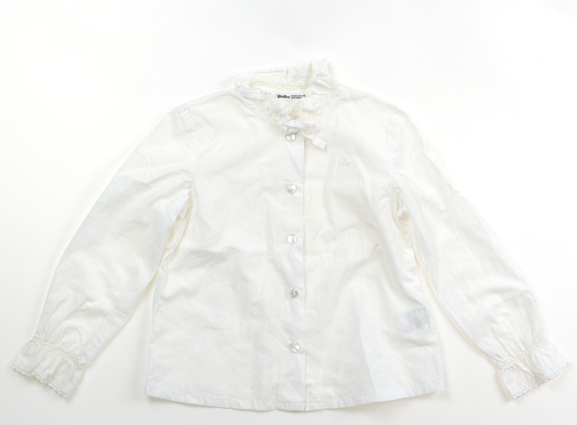 リボンは取り外し可能です。袖口に薄茶色いシミあり。洗いざらし感がありますが、普段使いにいかがでしょうか。