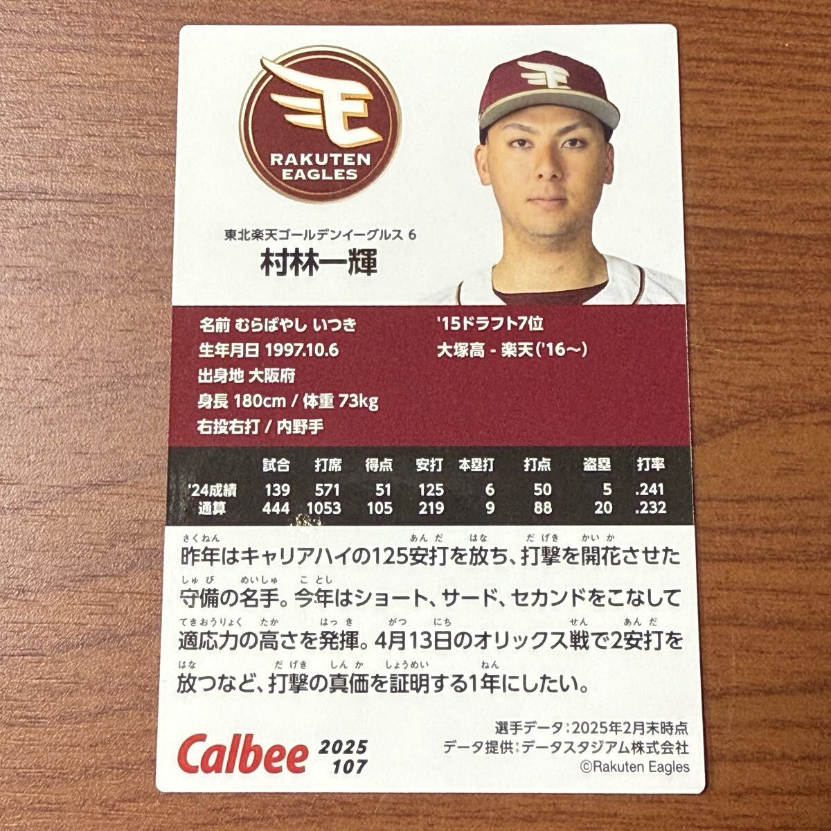 カルビー プロ野球チップス 2025年 東北楽天ゴールデンイーグルス 村林一輝 ノーマル レギュラーカード 107