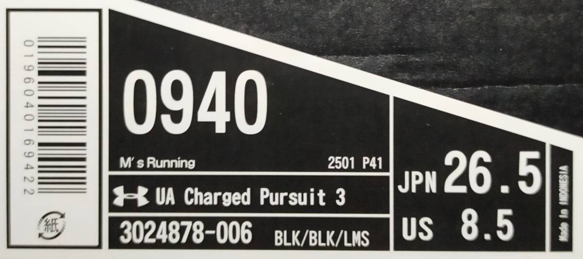 送料無料! 新品未使用 UNDER ARMOUR アンダーアーマー UA チャージド パスート3(ランニング/メンズ)26.5cm ブラック系 カモ柄 3024878