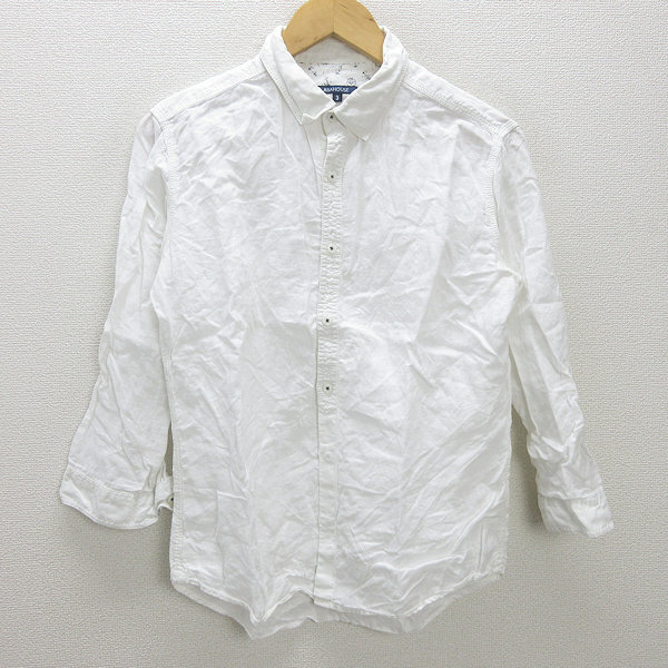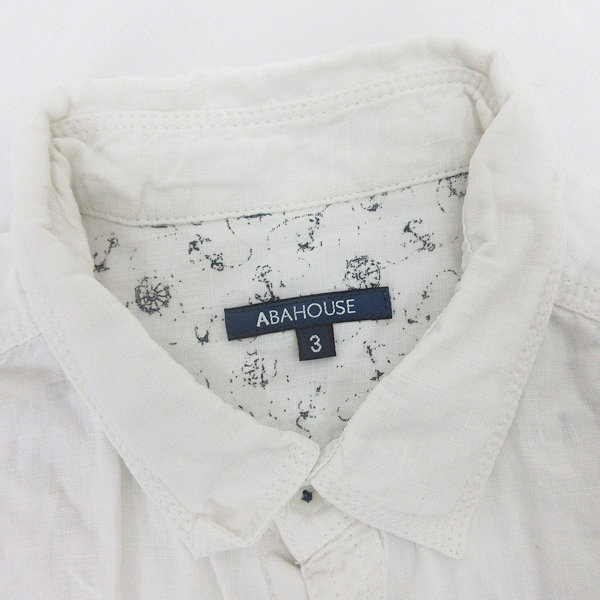G■アバハウス/ABAHOUSE 七分袖シャツ/リネン【3】白/men's/124【中古】■