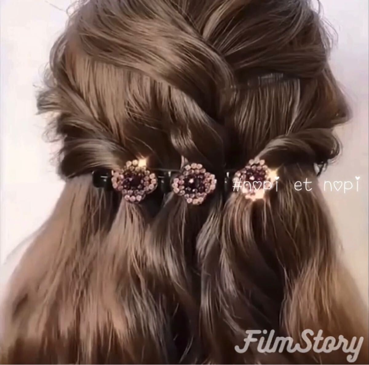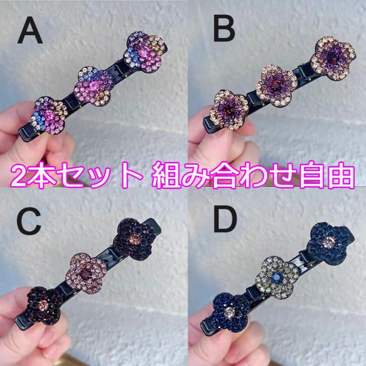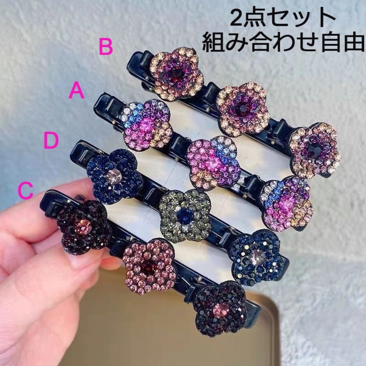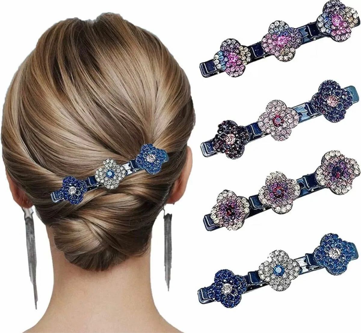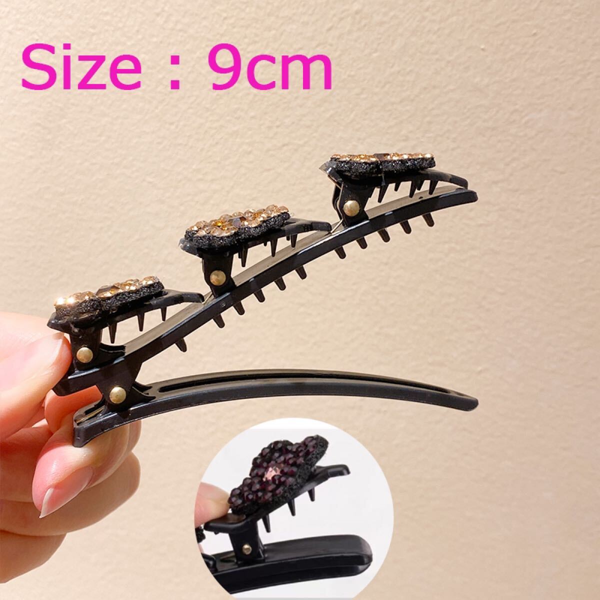 【説明】:キラキラストーンのお花が可愛い3連クリップ