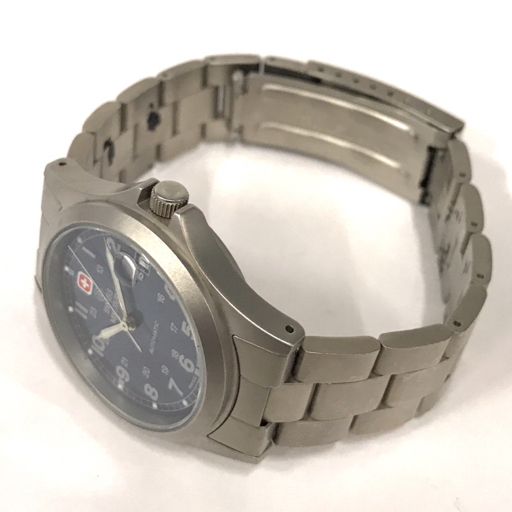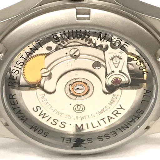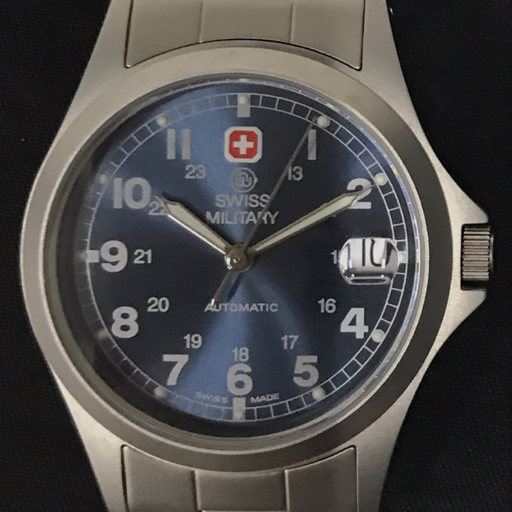 | スイスミリタリー デイト 自動巻き オートマチック 腕時計 5584 メンズ ブルー文字盤 裏スケルトン 付属品あり |