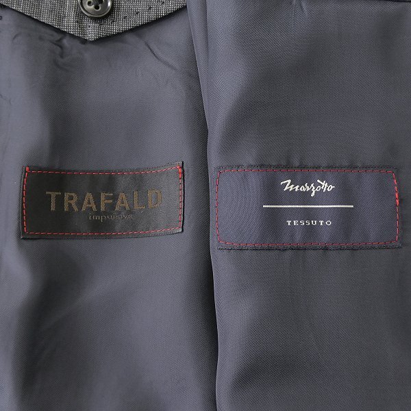 【TRAFALD(トラファルド)】 上質を身に纏う大人のためのビジネスウェアブランド。パッと見ただけでお洒落と感じさせてくれるコレクションの数々は、着る人にモダンで知的な雰囲気を与えてくれます。 デザインのみならず素材にもこだわり、「Ermenegildo Zegna(エルメネジルド・ ゼニア)」をはじめとした最高品質のインポート生地を使って、丁寧に仕立てています。そんな人とは違う、ワンランク上のビジネスウェアを、是非あなたのワードローブに。 【Marzotto(マルゾット)】 1836年、ルイジ・マルゾットがイタリア北部ヴァルダーニョにある小さな毛織物工場に投資を始めたのが起源で、現在では多くのイタリア名門生地メーカーを傘下に収める巨大グループ企業へと成長し、オーストラリアの牧場の中でも厳選された最上の牧場と提携し、高品質なウール・化繊製品を供給し続ける老舗メーカーです。 -------------------- イタリアの高級服地メーカー【Marzotto】の生地を使用した、高級感溢れるスーツです。 原毛の選別からフィニッシングまで綿密な研究を重ねて生み出されたファブリックで、ウール100%ながらにナチュラルストレッチ性を備えており、スタイリッシュで高いパフォーマンス性を持つ革新的な素材です。 生地には上品で落ち着いた雰囲気を演出するチェックの織り柄を採用。 織りならではの奥行きある表情が特徴で、無地にはない洗練された印象を与えてくれます。 さりげない柄行きのため、ビジネスシーンでも取り入れやすく、オンオフ問わず幅広く活躍します。 スーツのデザインはベーシックなシングル2Bジャケットに、ノータック&テーパードパンツを組み合わせた王道スタイル。 流行に左右されず長く着用いただけます。 また、スペアパンツが付属しているため、交互に穿くことで消耗を抑え、より長くご愛用いただける一着に仕上がっています。 【ジャケット】 ・総裏地 ・フロントは2つボタン ・センターベント ・袖先は4つボタン(開き見せ) 【スラックス】 ・ノータック ・ジッパーフライ ・テーパードシルエット ・同型のスペアパンツ付き |