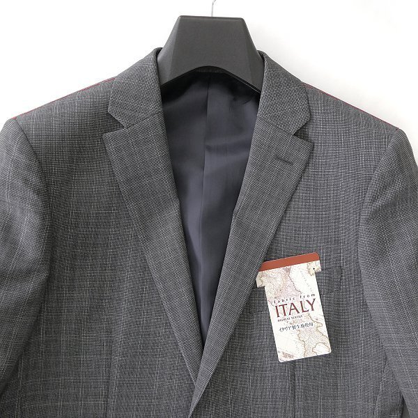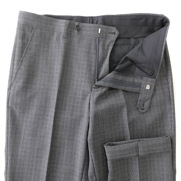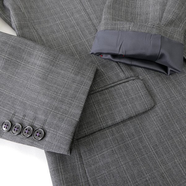 新品 未使用 紙タグあり A6サイズ(普通体型のLサイズ相当) 胸囲94 胴囲82 身長175 ※商品に記載されたサイズ・寸法です※ 【ジャケット】 肩幅42.5cm 身幅49.5cm 袖丈61cm 着丈70cm 【スラックス】 ウエスト85cm(内回り1周) 股上23.5cm 股下91cm 裾幅18.5cm 腿幅28.5cm(股下10cm部分) 表地:毛100% 裏地:ポリエステル100% グレー |
