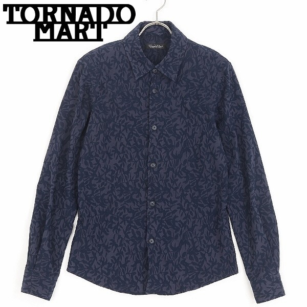 【HA462】◆TORNADO MART トルネードマート ストレッチ 総柄 コットン 長袖 シャツ 紺 ネイビー M | |