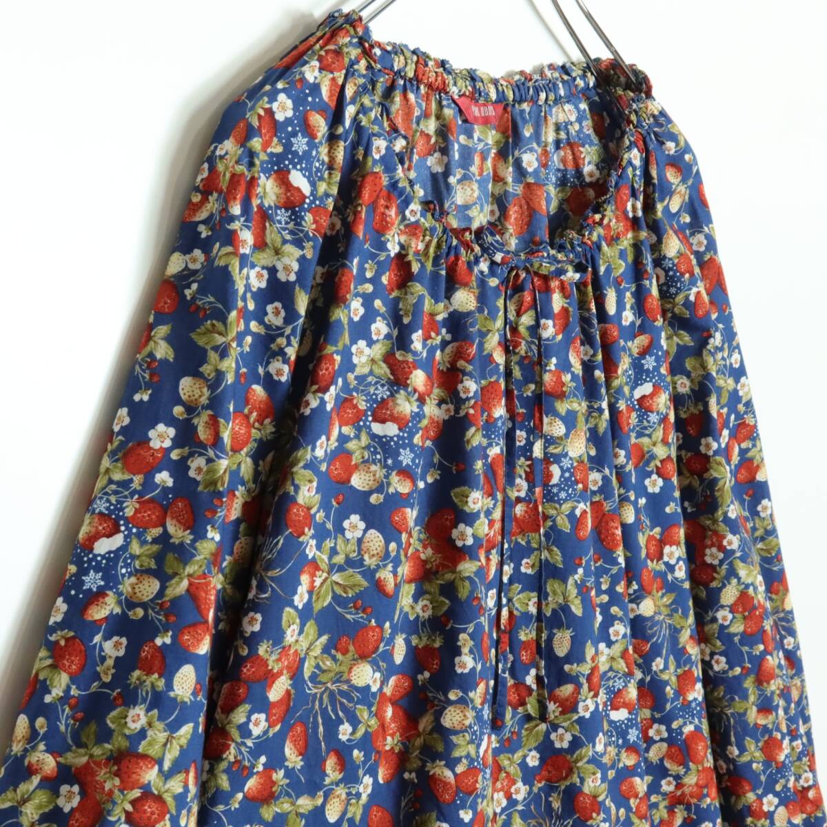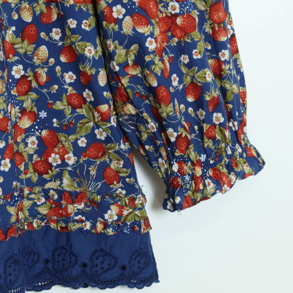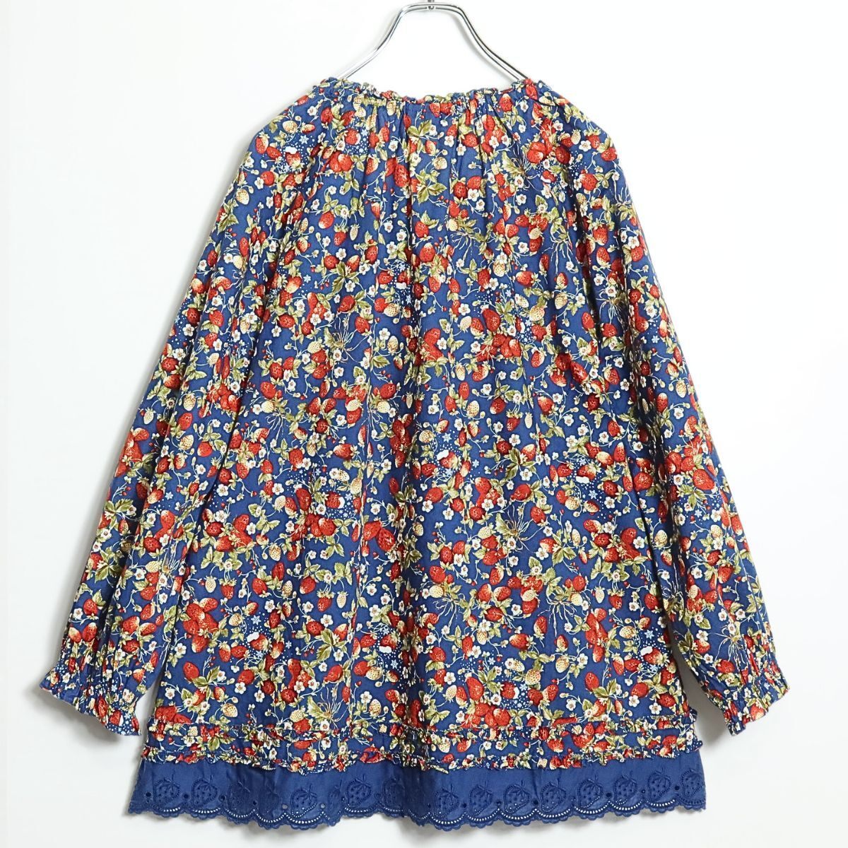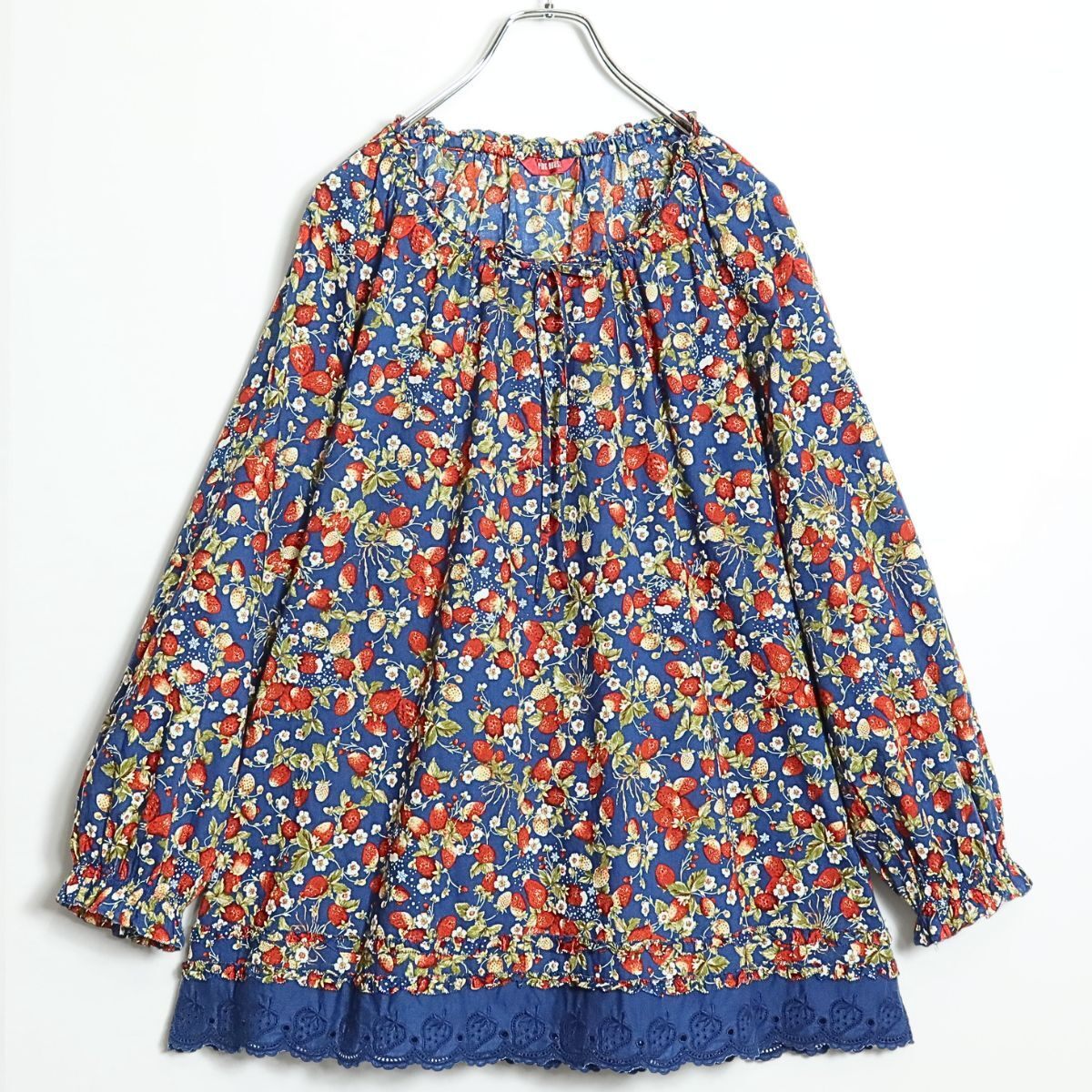 商品説明 | 【実寸約】バスト112着丈71 【サイズ表記】表記なし 実寸をご参照ください 【素材】綿100 【状態】状態良好で美品の域に入るお品物 残布あり 【デザイン】紺系 たっぷりの苺と、ちらりと舞う雪の結晶が可愛いスノーベリープリントのチュニックブラウスです。 小さな雪の帽子をかぶった苺もちらりと覗き、まるで絵本の世界のような雰囲気。 裾レースに苺のカットワークがあしらわれ、やや長めのデザインでチュニックとしても可愛い。 女の子らしい甘い雰囲気のコーディネートにぴったりな一枚です。 |