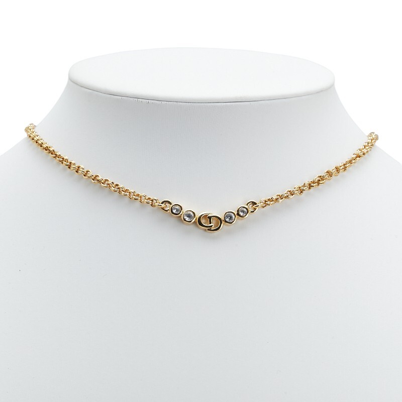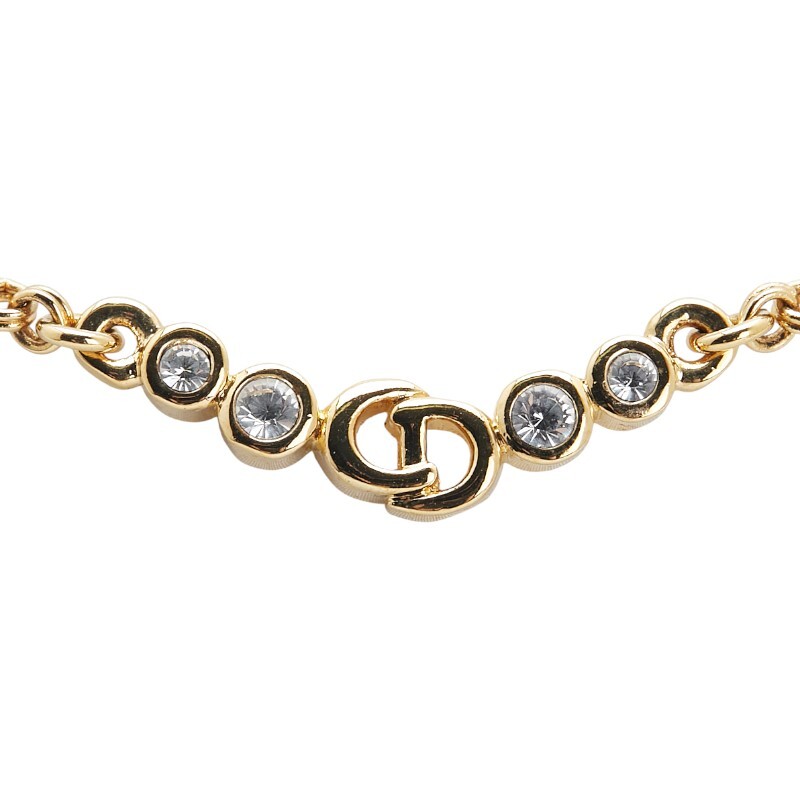 ディオール CDロゴ ラインストーン ネックレス ゴールド メッキ レディース Dior 【中古】