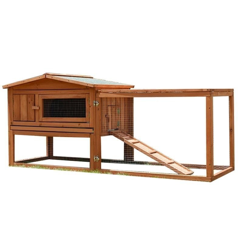 大型屋外ペットハウス:屋外チキンハウスは、家禽に十分な居住スペースとランニングスペースを提供するために、メインハウスとランニングエリアの2つのスペースに分かれています。 ペット用のスロープを備えて設計されていますリビングスペースの上部と下部に簡単にアクセスできます.