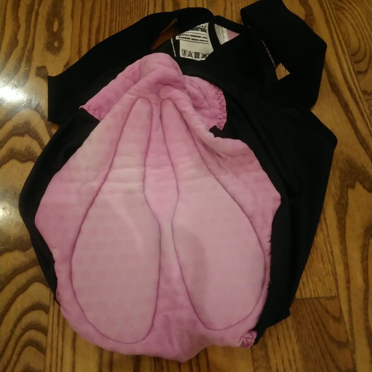 状態:使用感があり、パッドの色が洗濯で褪せてきています。お尻に擦れがあります。パッドはしっかりしておりダメージもありません。