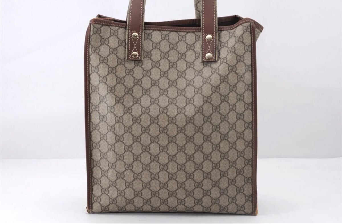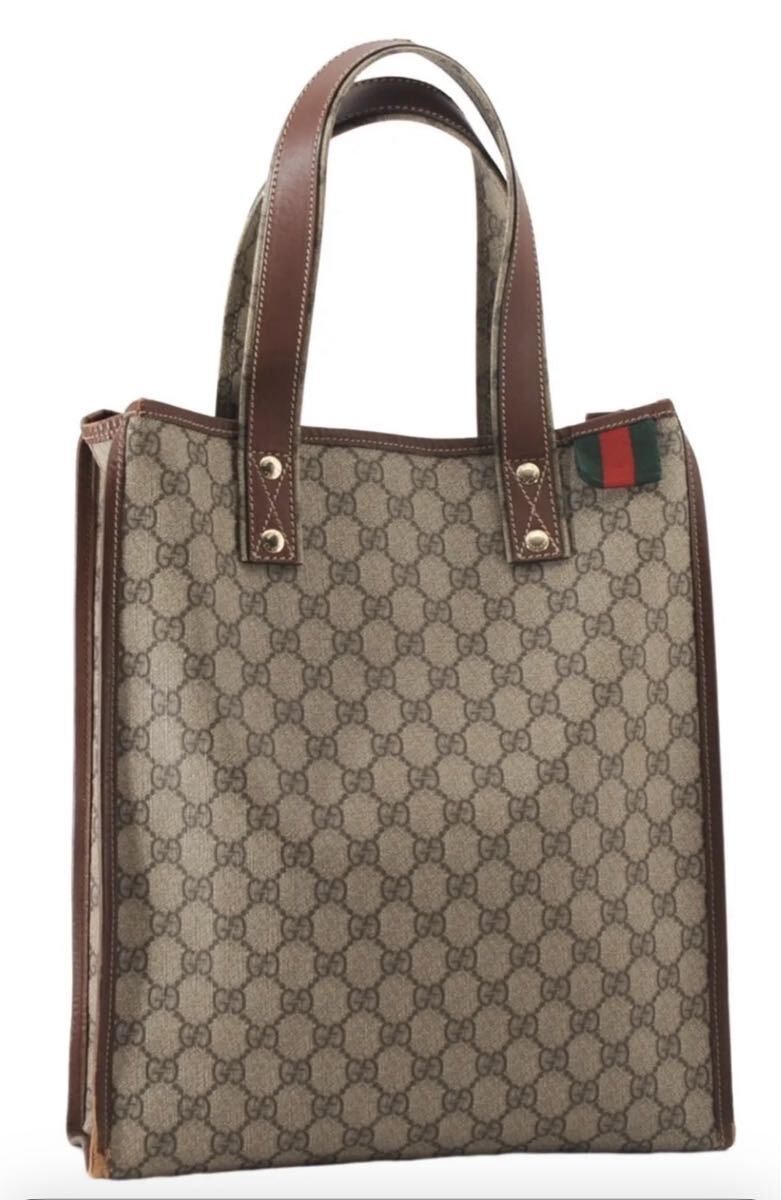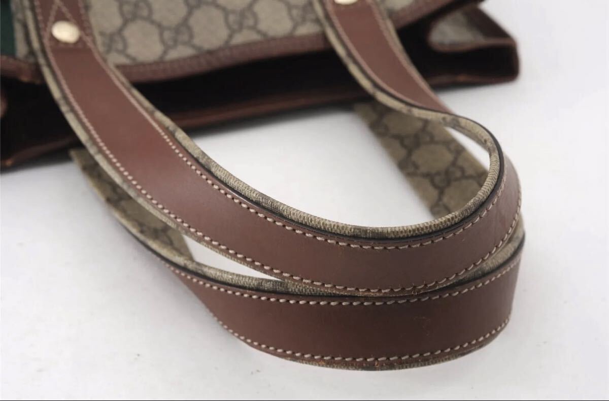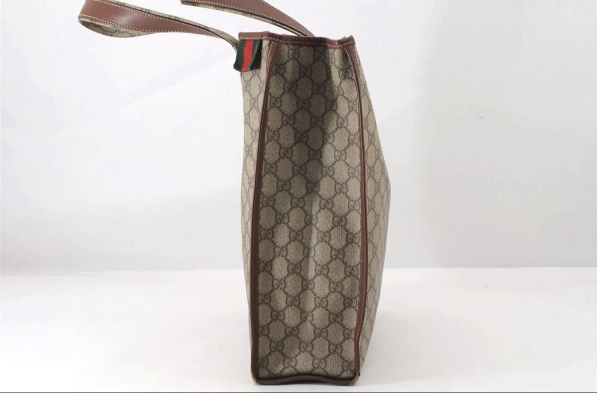 【極美品】GUCCI グッチ トートバッグ GGキャンバス ブラウン レザー ハンドバッグ シェリーライン ヴィンテージ イタリア製