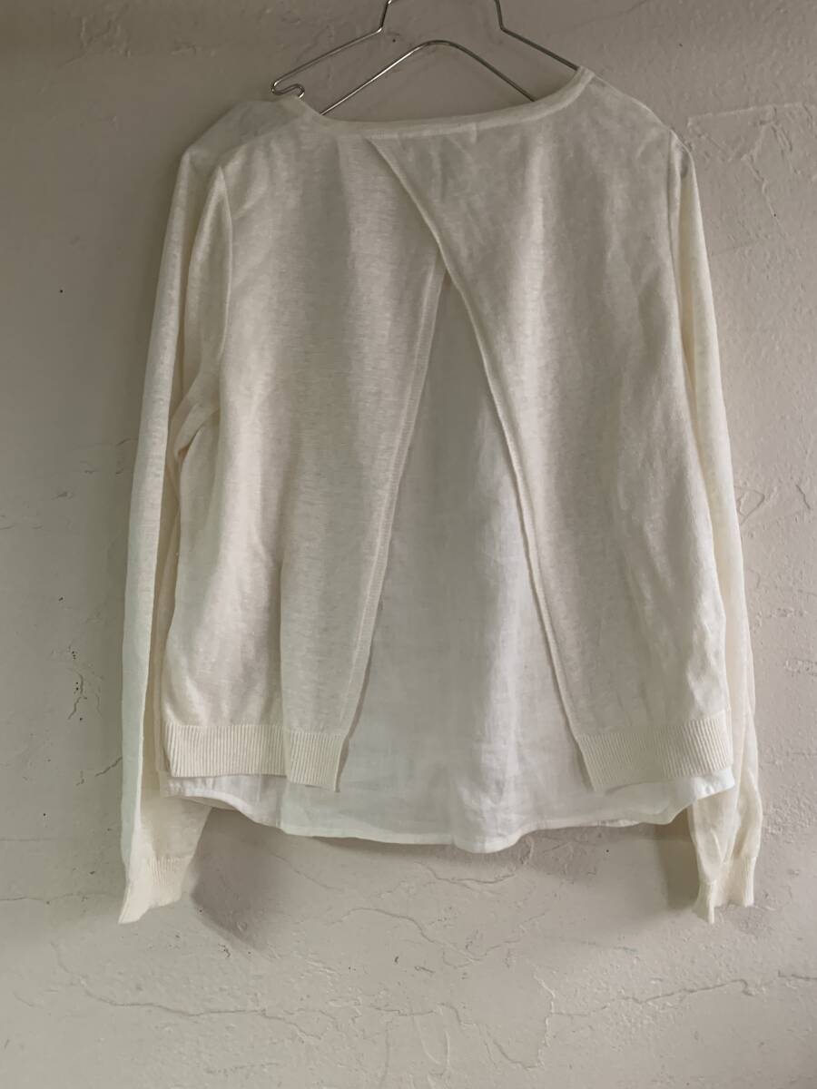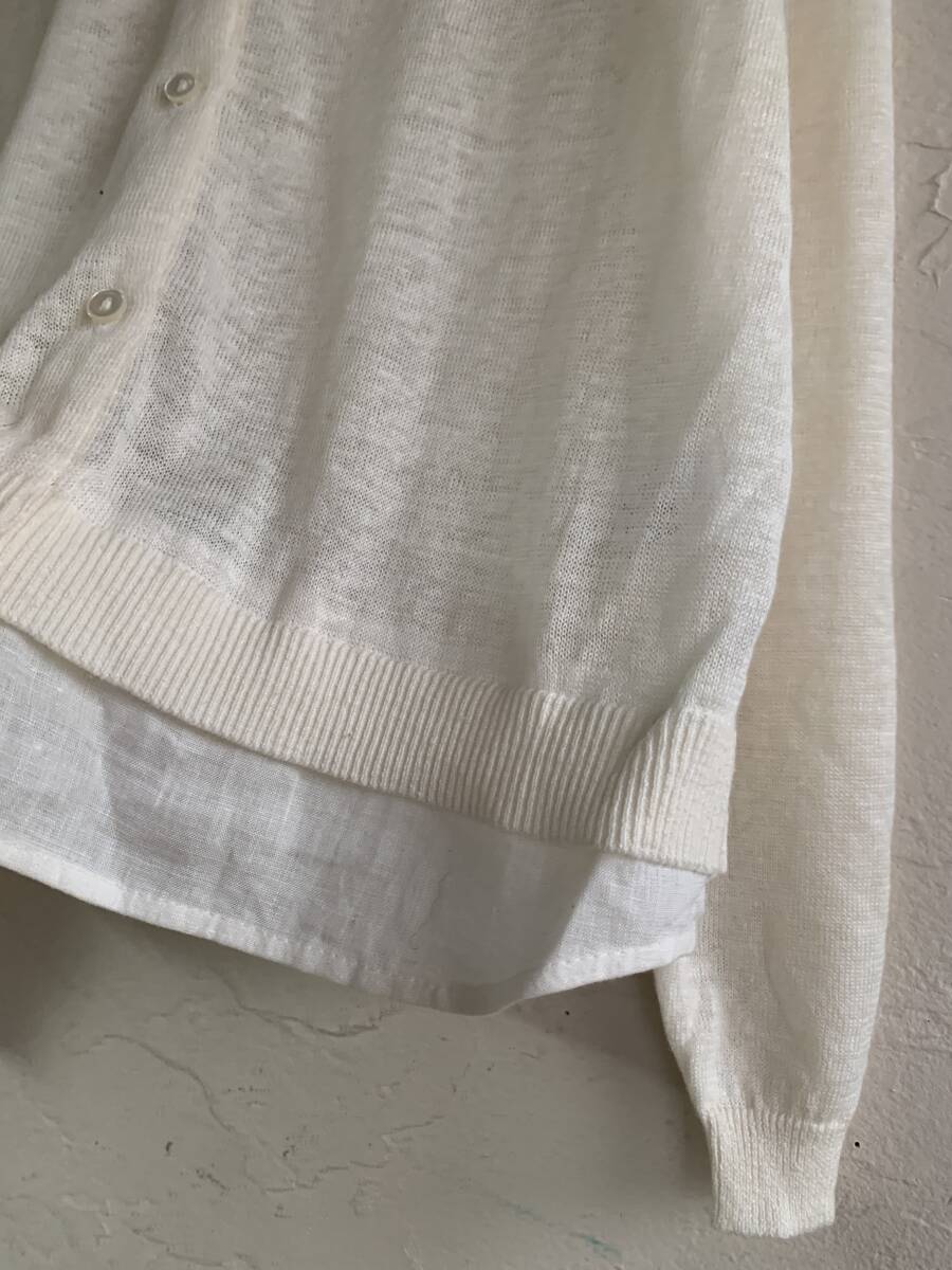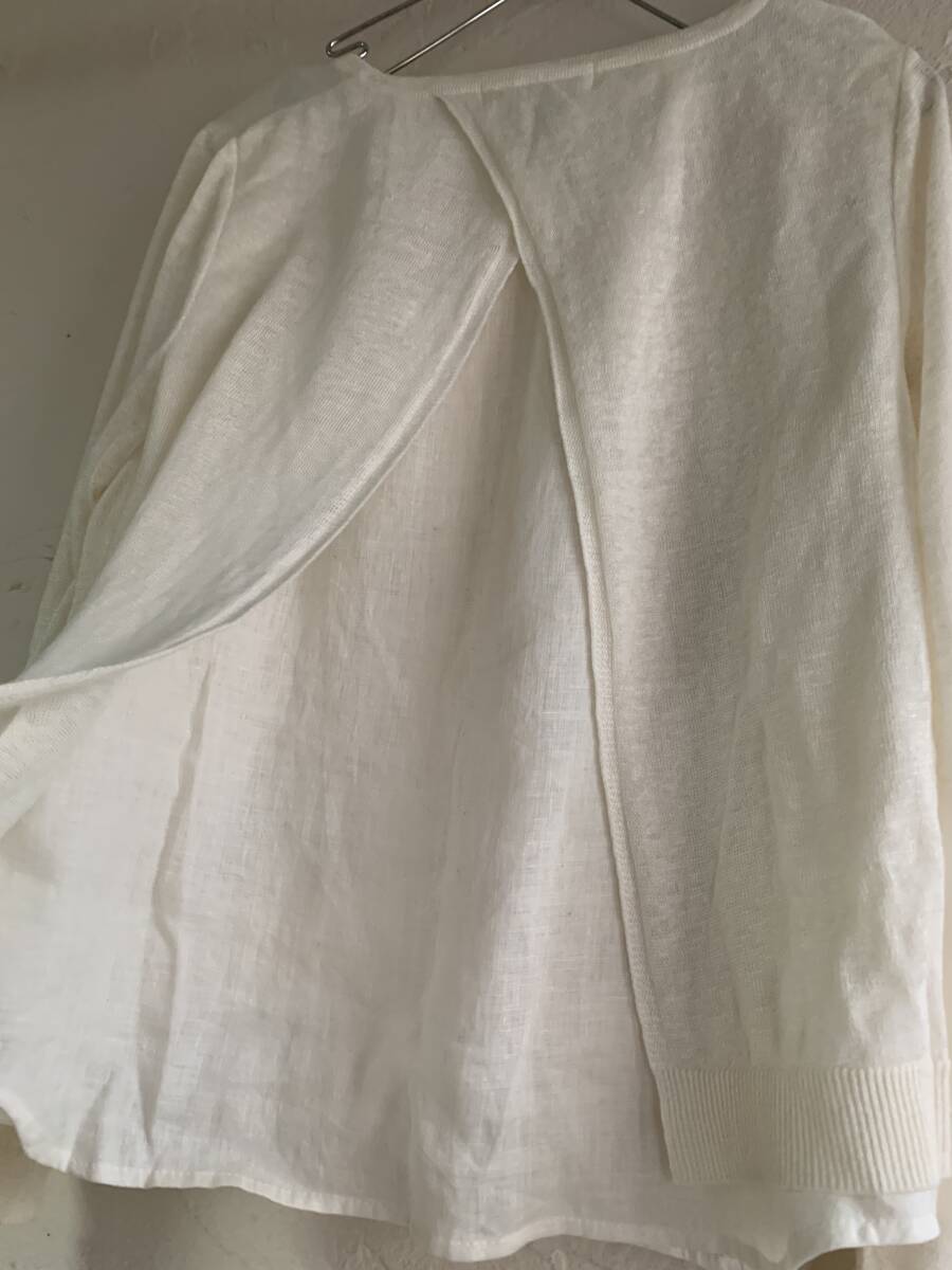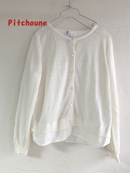 ◆S24◆Pitchoune ピッチュン リネン素材 麻100% 異素材切替カーディガン バックスリットレイヤードデザイン アイボリー ホワイト
