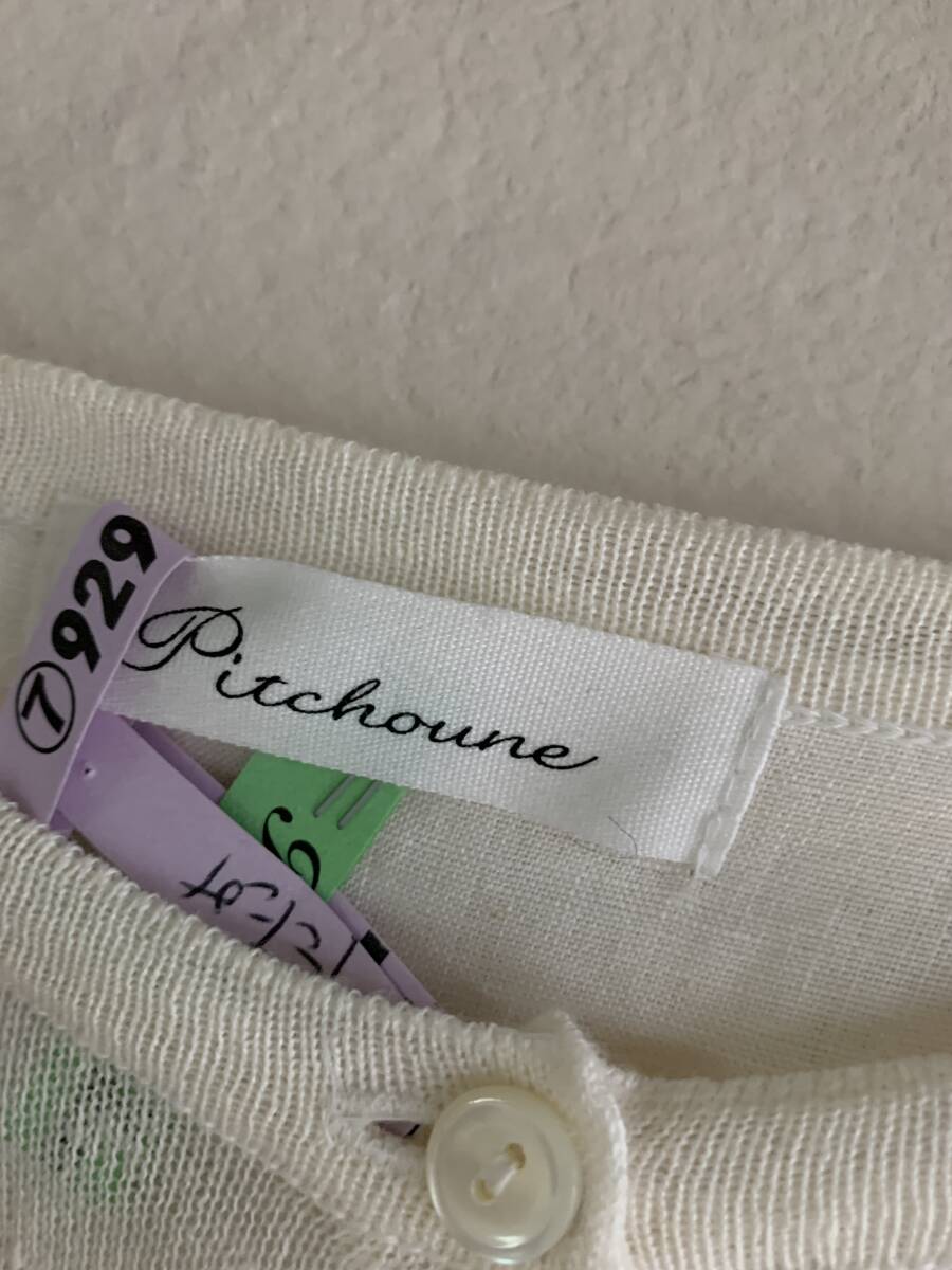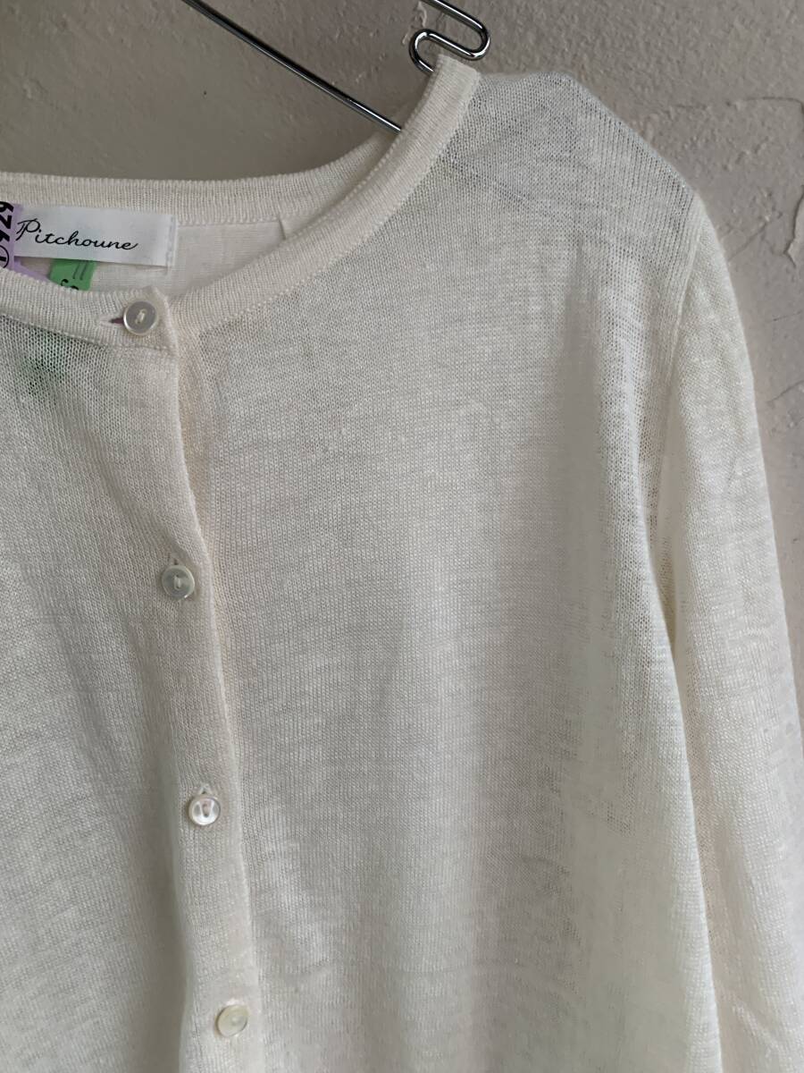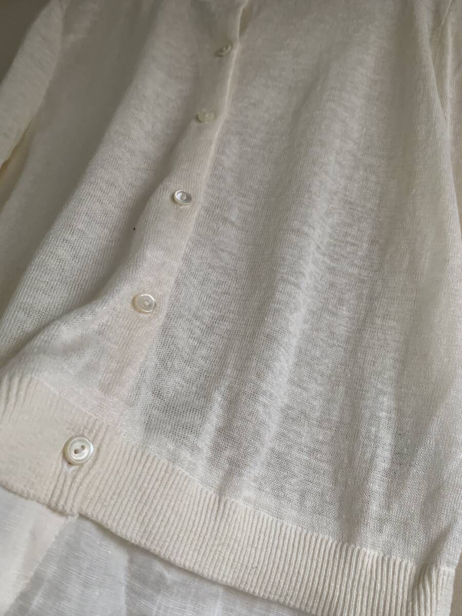 ◆S24◆Pitchoune ピッチュン リネン素材 麻100% 異素材切替カーディガン バックスリットレイヤードデザイン アイボリー ホワイト
