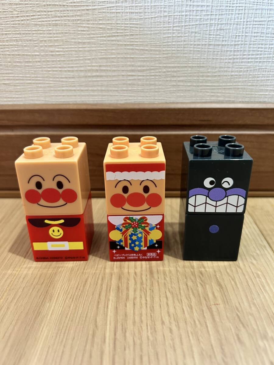 BANDAI【中古品】 アンパンマン はじめてのブロックワゴン おまけ付き ボリュームたっぷりの1.5才~のお子さまに向けたベーシックなブロックセットです。 はじめてのブロックあそびに最適で、2ピースのブロックでアンパンマンとなかまたちやおうち、犬、ネコ、鳥などの動物を作ることができます。 キャラクターブロックは、アンパンマンブロック、ばいきんまんブロック、ドキンちゃんブロック・・・と大満足の11体が入ったボリュームたっぷりのデラックスセット。 また、ワゴンのふたと「まる」「さんかく」「ダイヤ」「ほし」の赤いブロックを使って形合わせ遊びも楽しめます。 大きなタイヤが付いたワゴン型の収納ケースに入っているので、お片づけも楽しく、収納にも便利です。 ※ワゴンのサイズ W415×H274×D272mm おまけ付き アンパンマンandバイキンマン 1体 アンパンマン(クリスマスバージョン)非売品 1体 バイキンマン ソフトボール ドキンちゃんブロック 1体 動物園ブロックSET ※写真にてご確認ください。 | |||