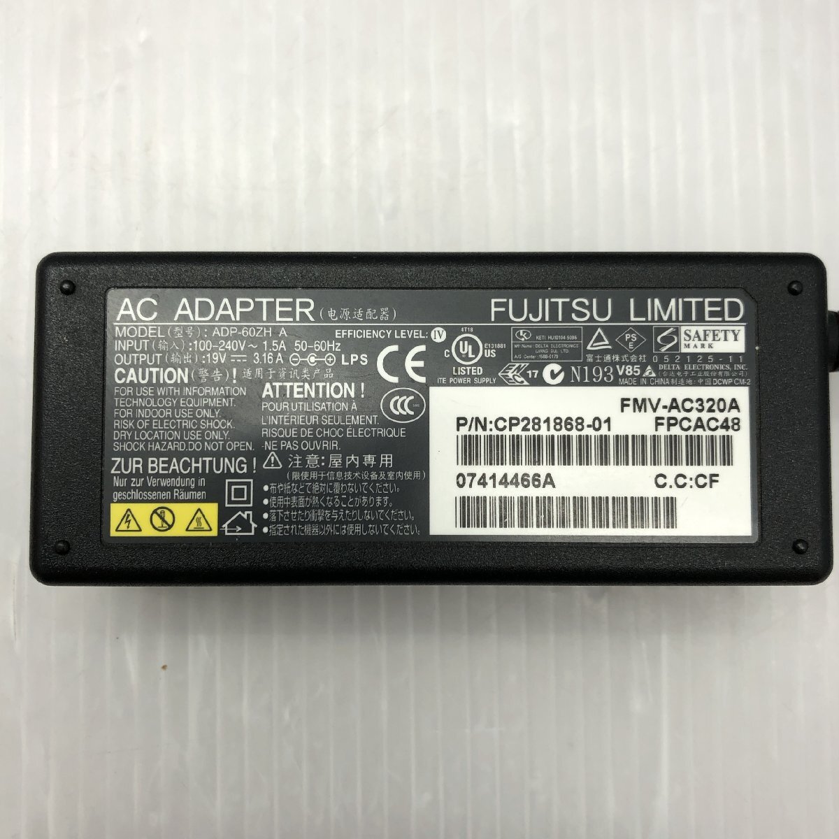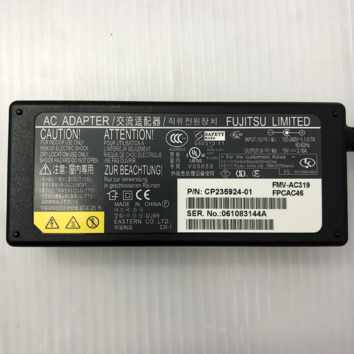 | 商品と付属品について | 型番:FMV-AC320A・FMV-AC319・FMV-AC312・FMV-AC320C・ADP-60ZH A (主に上記内の型番商品が入っていますが違う型番商品が入っている場合もございます) 個数:10個 付属ケーブル:無し 出力:100V-240V 入力:19V 3.16A ※簡易清掃のみとなっております。傷や汚れ等はございますのでご了承ください。 ※商品状態につきましては、錆・通常使用に問題の無い被膜破れがある場合がございます。 ※適応機種につきましてお客様にてご確認お願い致します。 ※動作不良や充電不可などの初期不良を除き、お客様のご都合による返品はご遠慮いただいております。 |