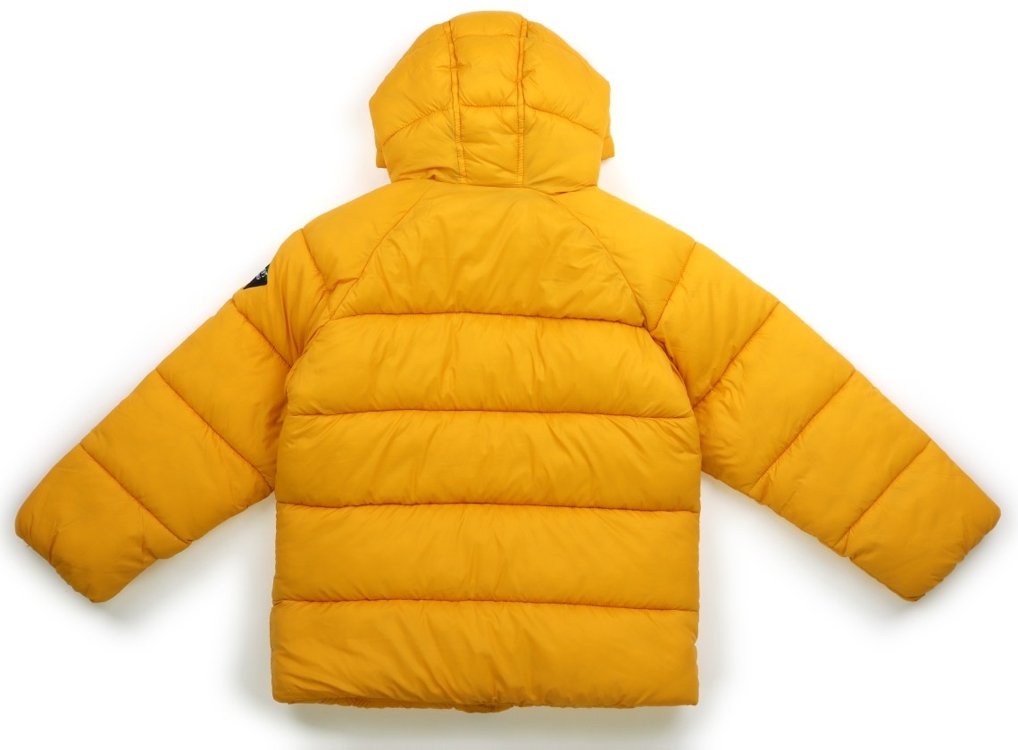 BIG FIELDです。ナイロン地。中綿入り。フードは縫い付けです。ブランドタグにシール剥がし跡あり。薄いシミや汚れが複数見られます。