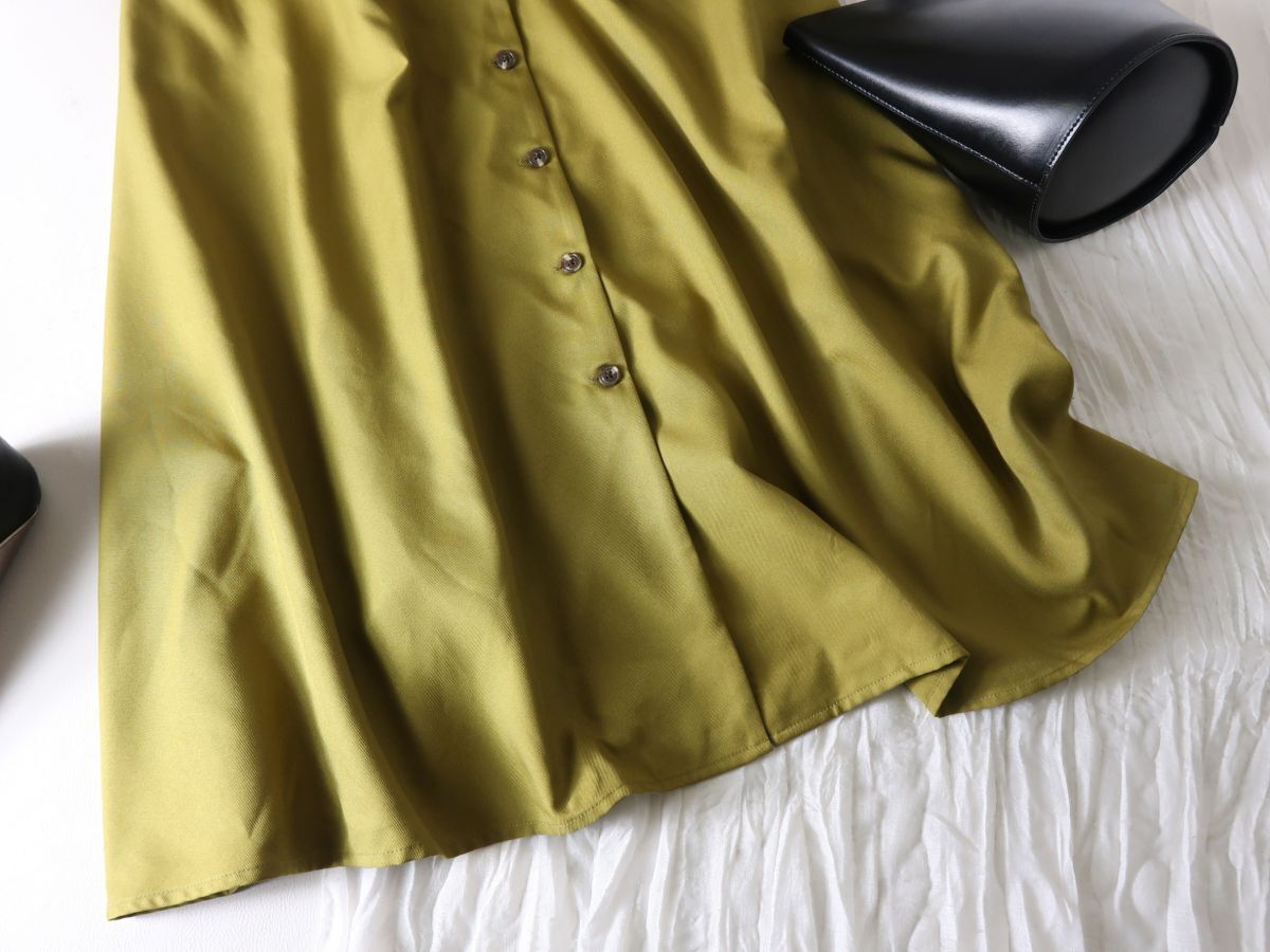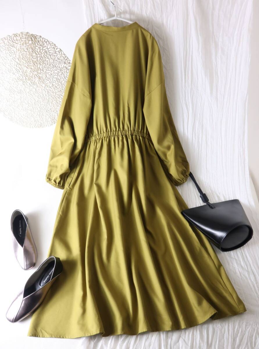 ウエスト切り替えのデザインがスタイルアップ効果もあり、落ち着いたカラーで甘さを抑えた上品な印象に◎