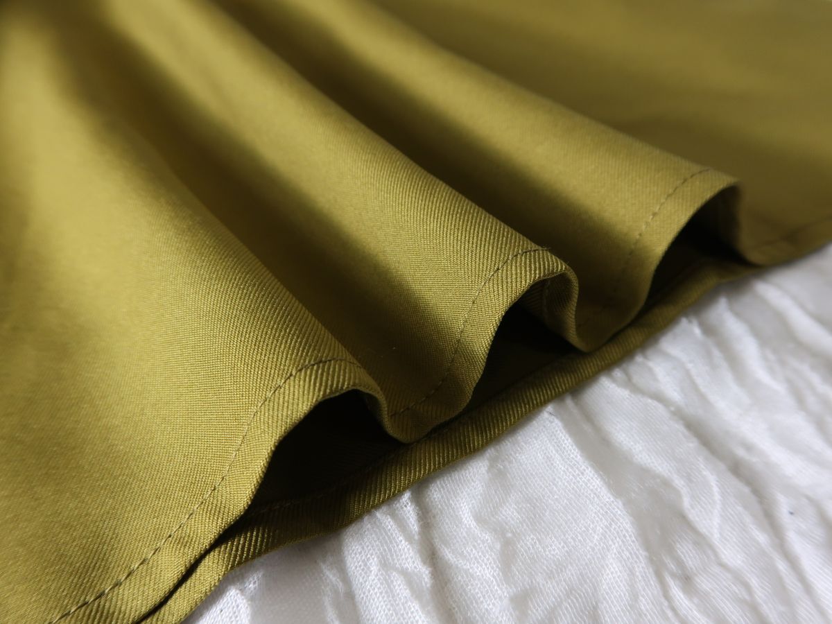 ふんわりとしたエアリーなシルエットながらも落ち感のある生地が広がりすぎず、スキッパーネックや足首の覗く着丈がスッキリとした印象に。