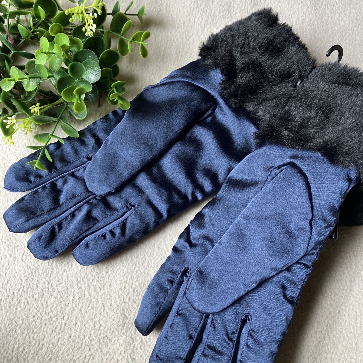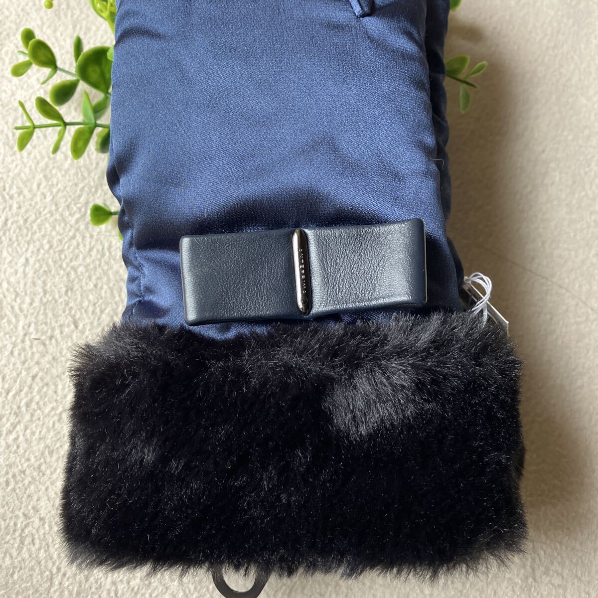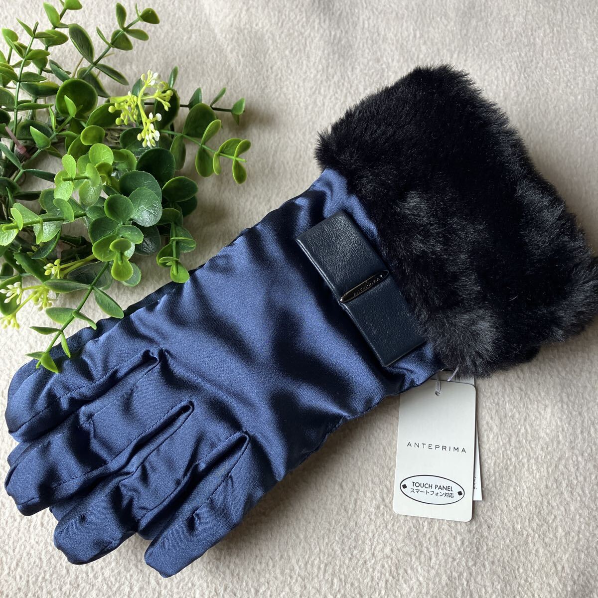 ★新品★ ANTEPRIMA アンテプリマ 防風 裏起毛 手袋 ボア&リボン スマホ対応 レディース ネイビー系