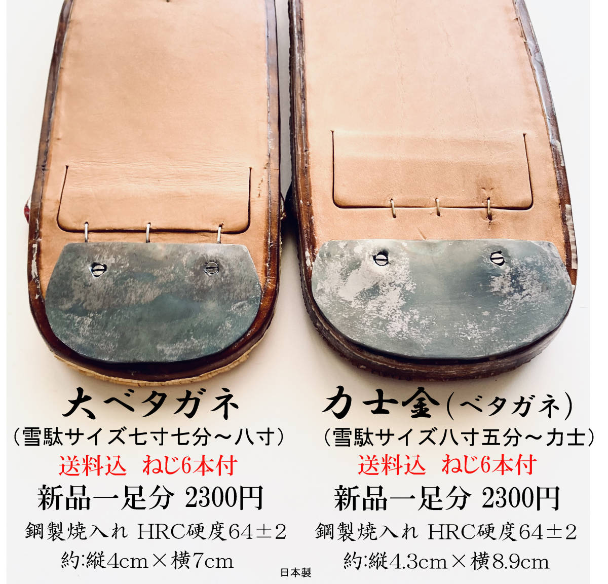 各雪駄のサイズ別で大がね(七寸七分/八寸用)、力士金(八寸五分~力士)とあります。