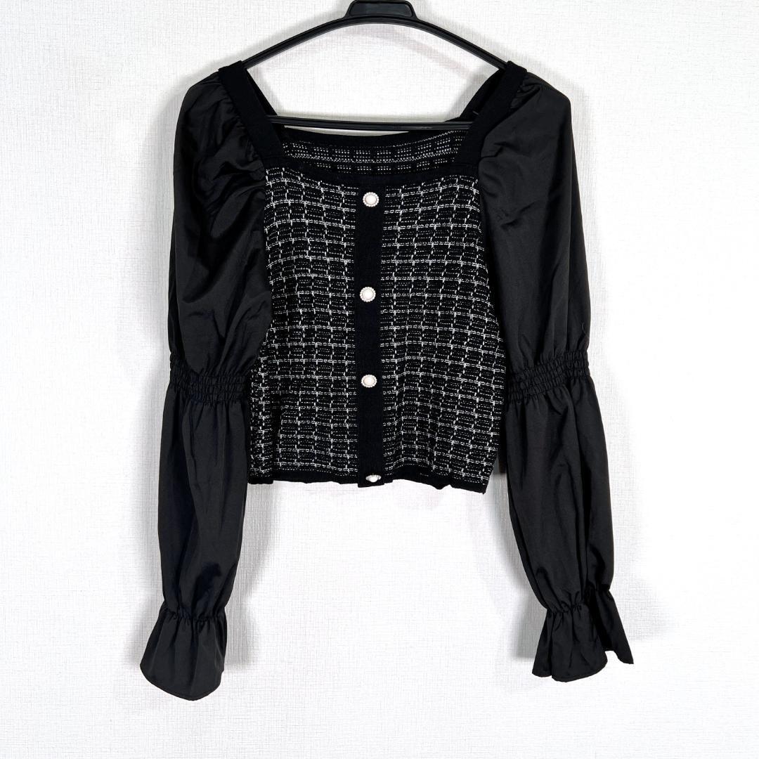 【clear】クリア 黒 ブラック ラメ入り ツイード調 カットソー トップス 女性用 レディース Fサイズ フリーサイズ【a031】
