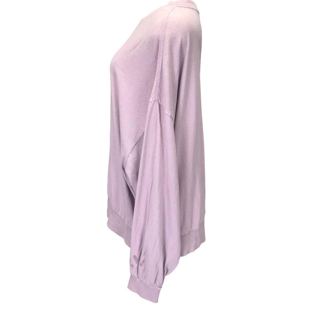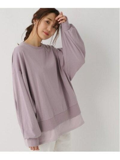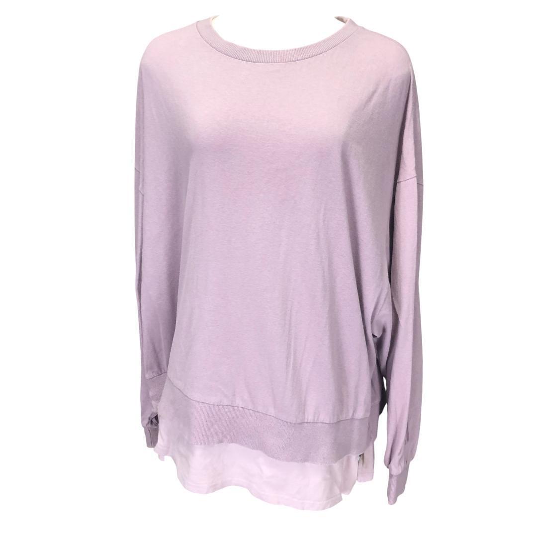 心地の良い天竺素材を使用した薄紫のフェイクレイヤード長袖チュニックです。ストレッチが効いています。ビッグシルエットでゆったりと着用いただけます。