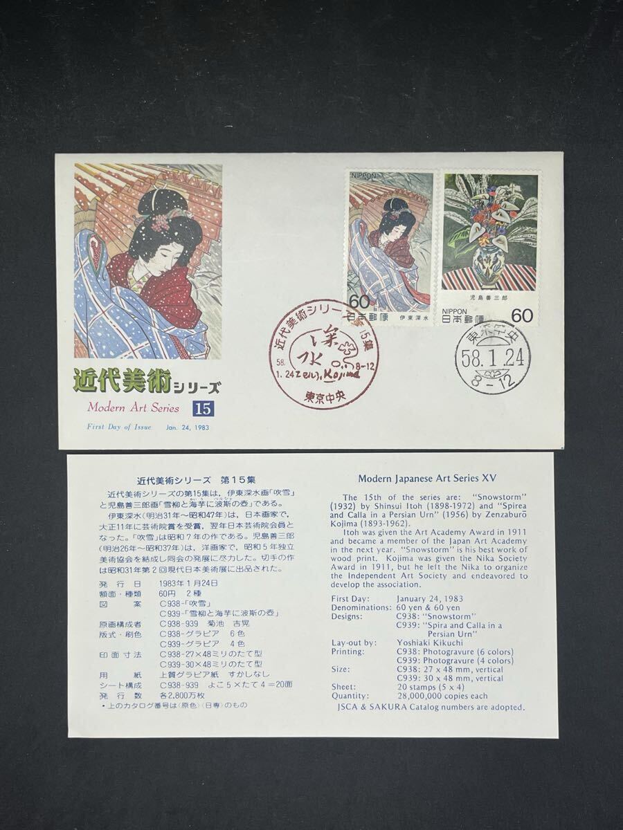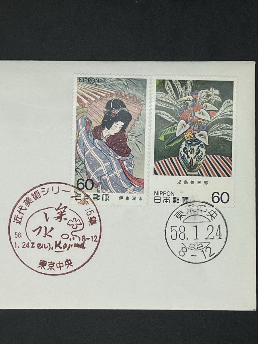 「吹雪」60円 「雪柳と海芋に波斯の壺」60円の2枚貼り