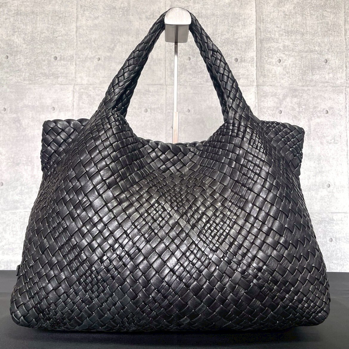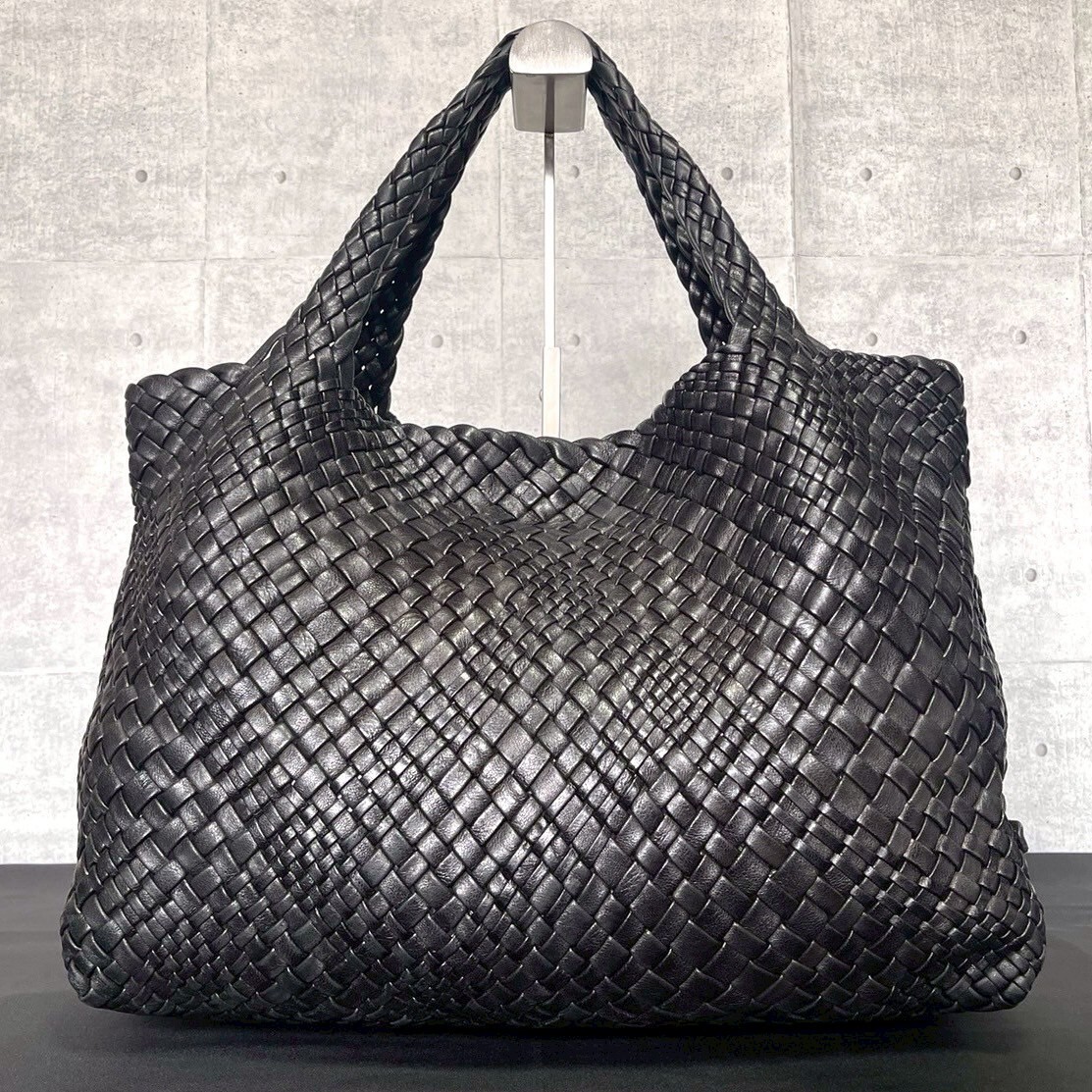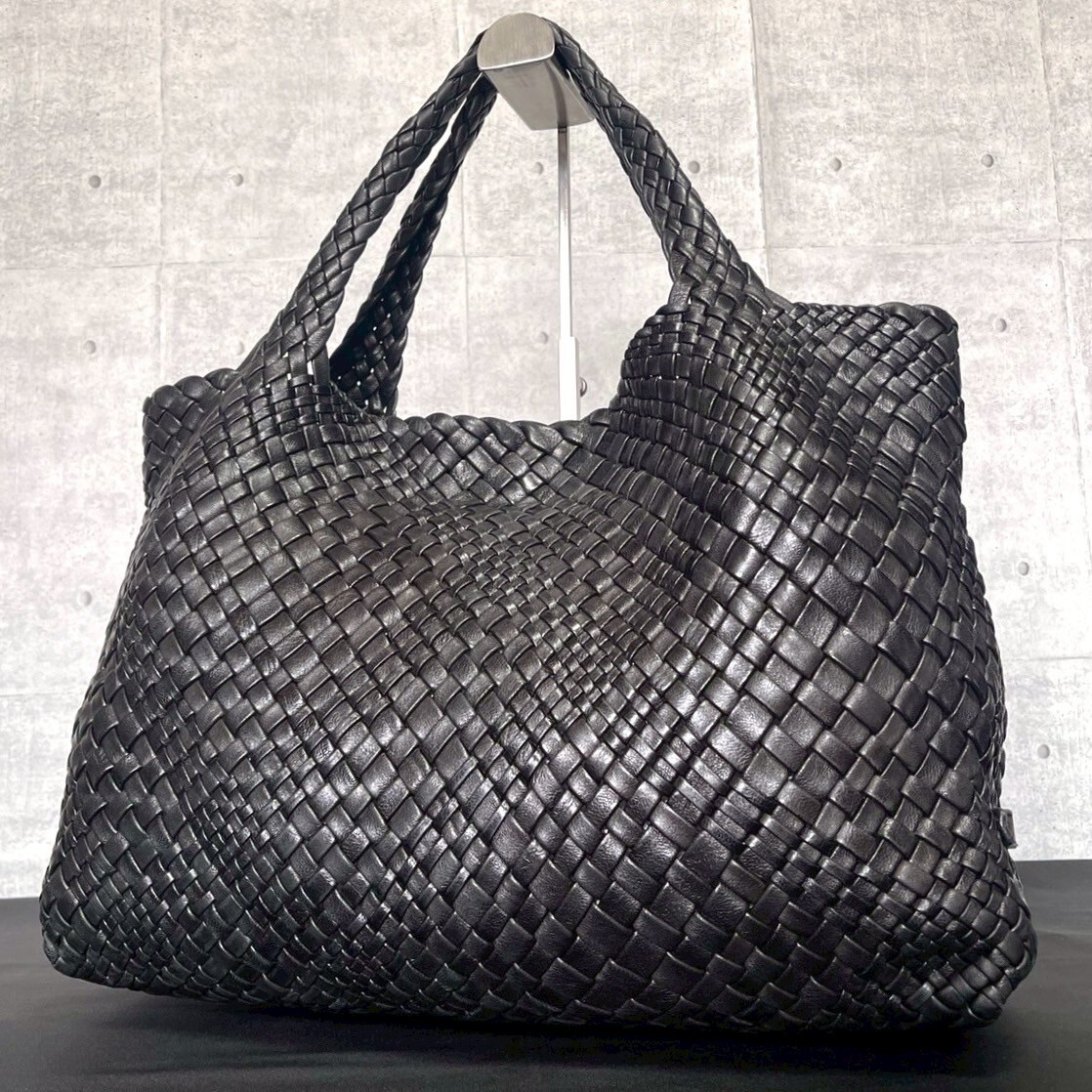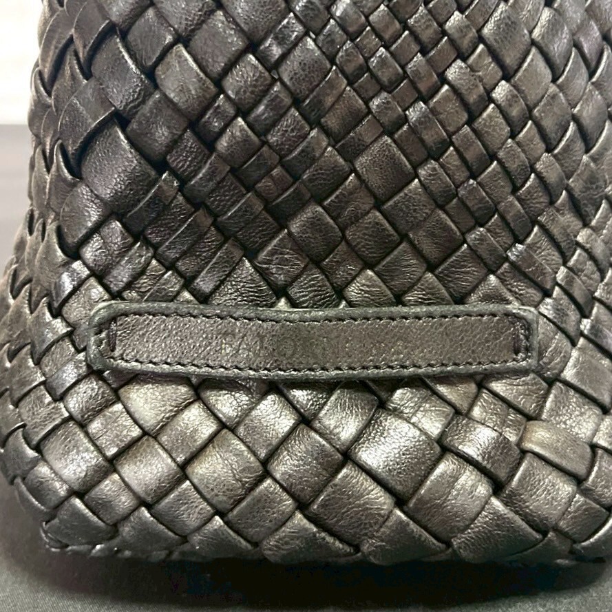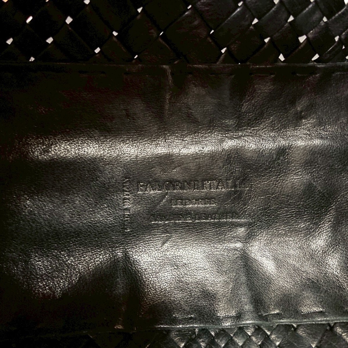 良品 FALORNI BLACK ファロルニ イントレチャート ブラック 黒 メッシュ 肩掛け ハンドバッグ トート イタリア製 ラムレザー 編み込み