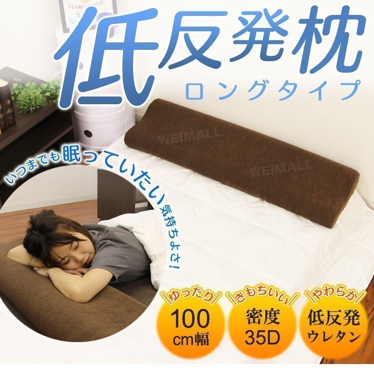 極上の柔らかさが魅力!包み込まれるような寝心地! 低反発ロング枕です。 ゆっくり沈んでじんわり戻る、体圧分散に優れた低反発ウレタンを使用! 頭部や首まわりの動きに合わせてゆっくり沈み込み、圧力を分散!適度なフィット感&弾力性で、理想の寝姿勢に近づけてくれます♪ なんと言っても幅100cmの超ワイドロングサイズがポイント! シングルサイズの敷き布団・マットレスの幅とほぼ同サイズですので、どんなに寝返りを打っても枕がフィット♪ 「枕からすぐ頭が落ちてしまう!」といった方にオススメです! お子さまとの添い寝や、ご夫婦で一緒に使うこともできます。おひとりで使用すれば寝返りもし放題です。 枕は向きを変えることによって高さを選択可能です。 高い方がお好みの方は10cmを、低い方がお好みの方は7cmをと、2パターンからお選びいただけます。 洗える枕カバー付きです! 【商品詳細】 内容 本体 ×1 カバー ×1 カラー:ブラウン サイズ:(約)幅100cm×奥行30cm×高さ10cm/6cm/7cm 重量:(約)880g 素材:低反発ウレタン(密度35D)、ポリエステル100% その他:低反発タイプ(ホークスセール) |