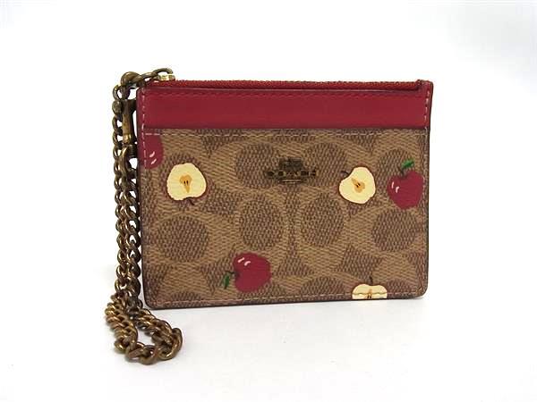 COACH コーチ シグネチャー レザー アップル柄 コインケース パスケース 小銭入れ 定期入れ ブラウン系×レッド系 DI5116