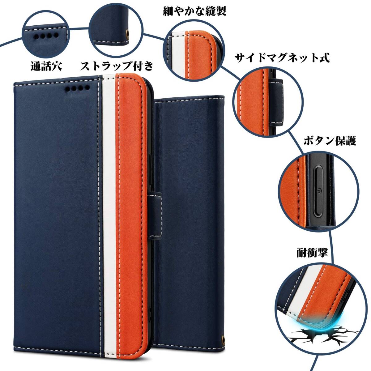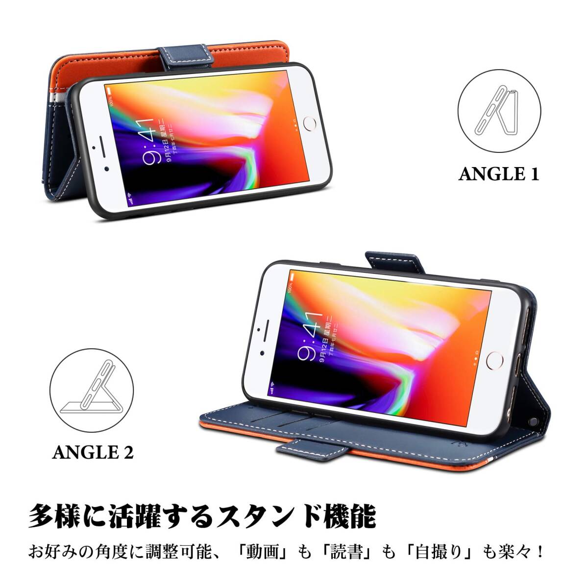 iPhone SE ケース 第2世代 iPhone SE3 ケース 手帳型 iPhone 8 ケース Rssviss アイフォン8 カバー iPhone 7 アイフォン SE3 スマートフォン用手帳型ケース スマホケース se 2020 カード収納 iPhone SE2022 ワイヤレス充電対応 スタンド機能 サイドマグネット 財布型 W5N 4.7inch ネイビーxオレンジ