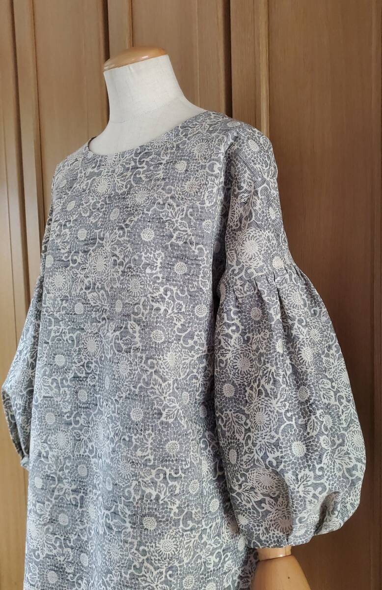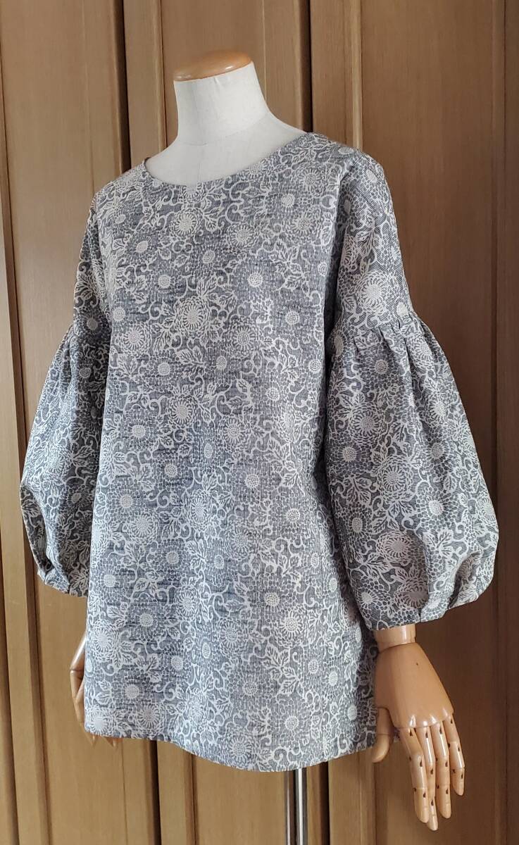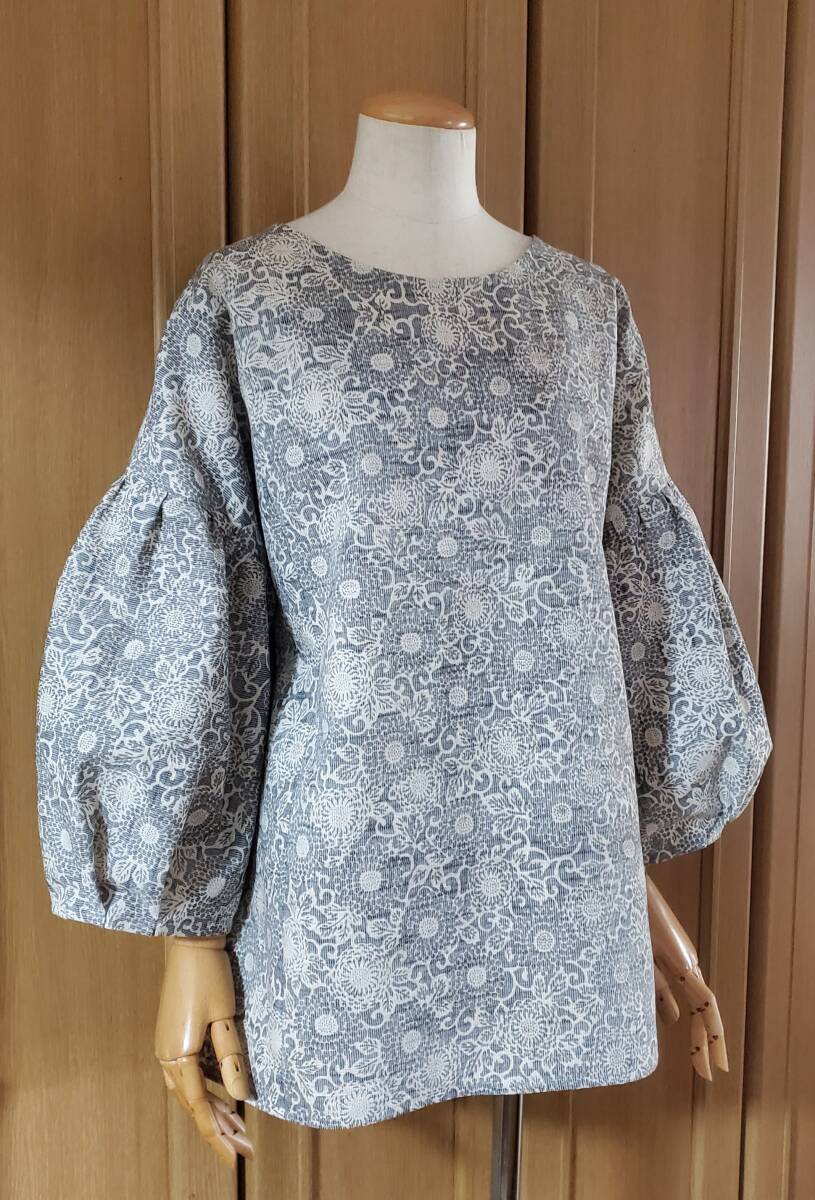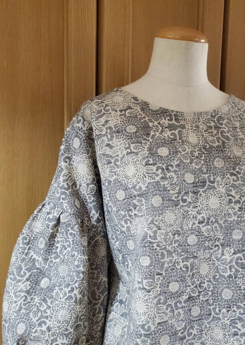肩下がりのバルーン袖、袖山にギャザー、袖口にタック4つ