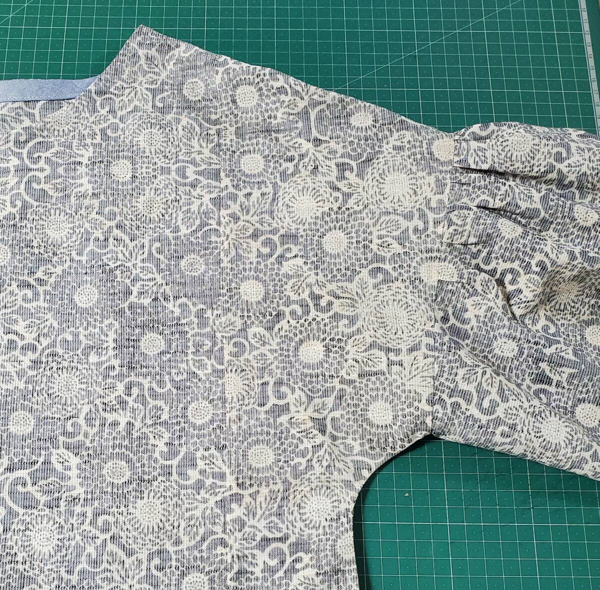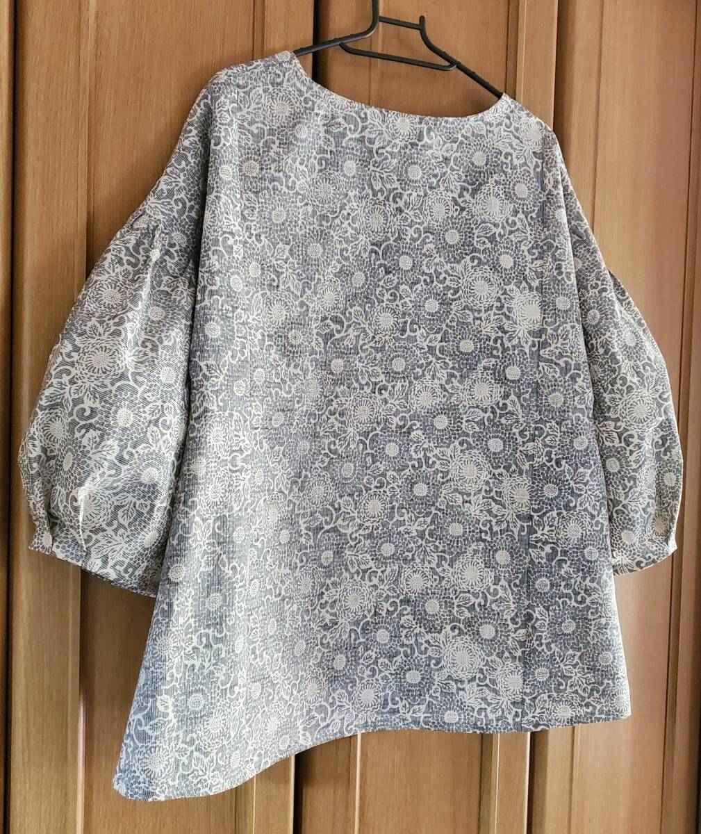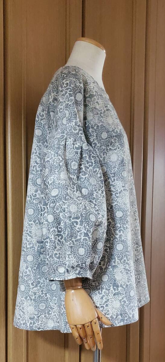 肩下がりのバルーン袖、袖山にギャザー、袖口にタック4つ