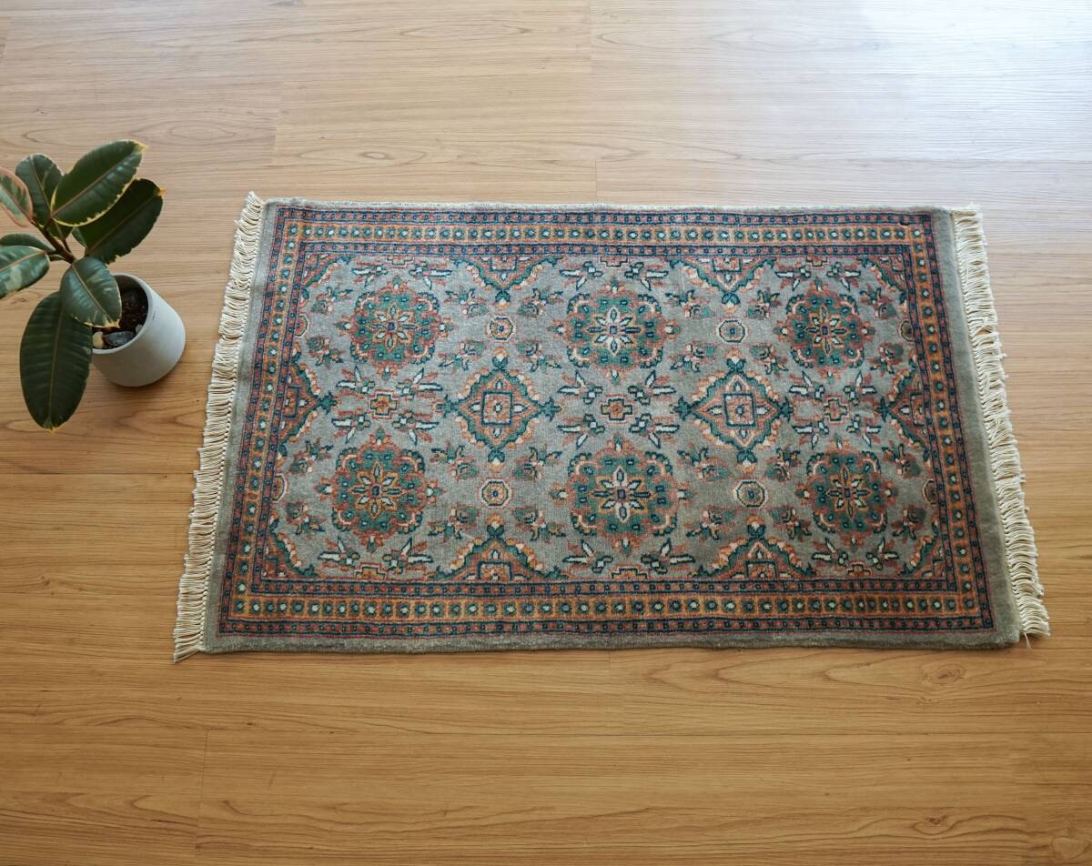94×58cm パキスタン手織り絨毯 メリノウール使用 Fine quality
