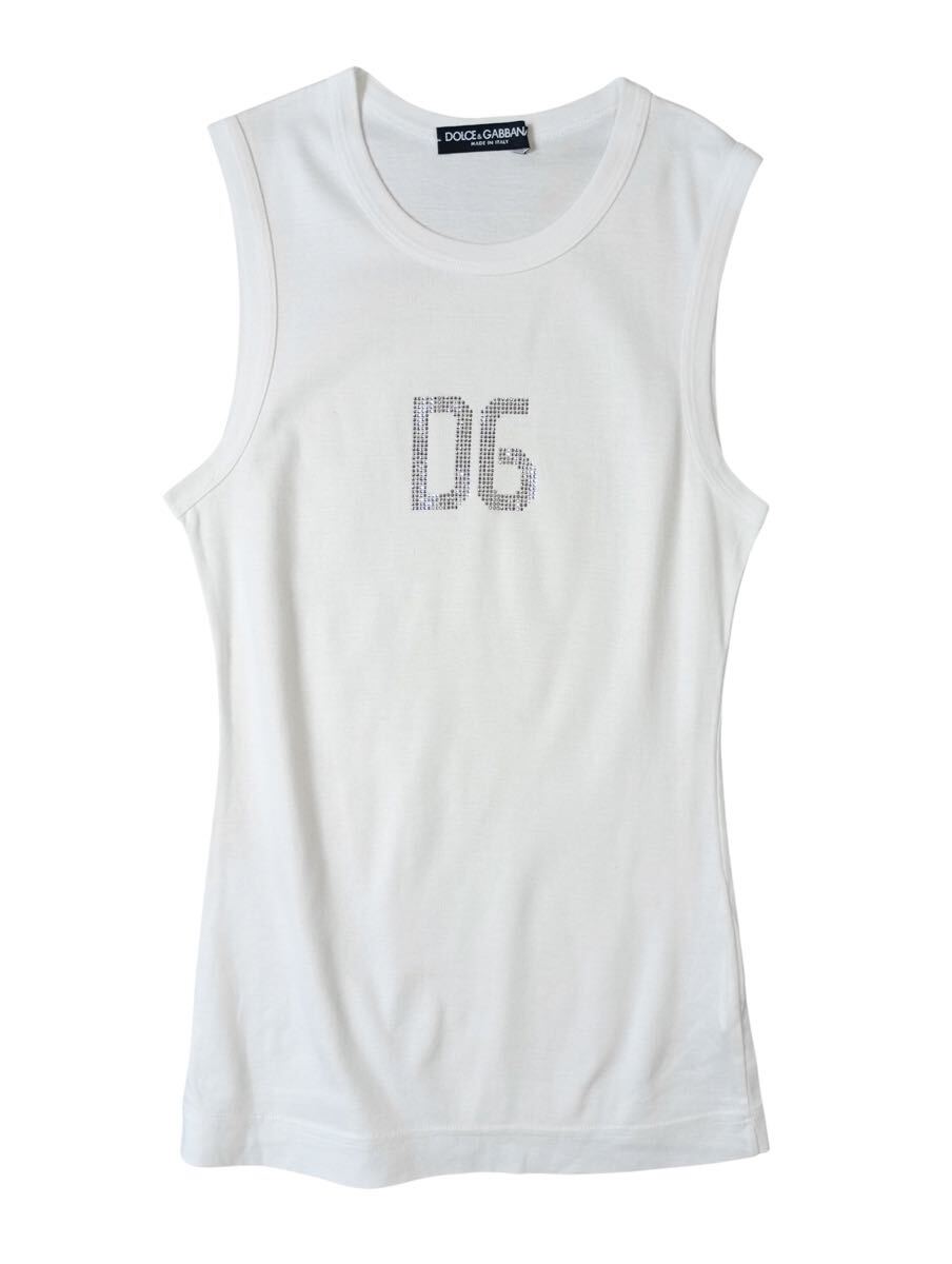 (D) DOLCE&GABBANA ドルチェ&ガッバーナ ラインストーン DGロゴ タンクトップ 40 ホワイト ノースリーブ トップス 送料250円