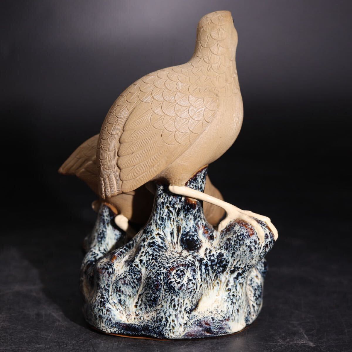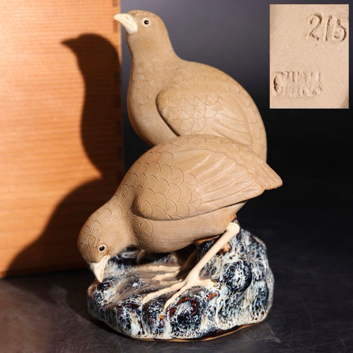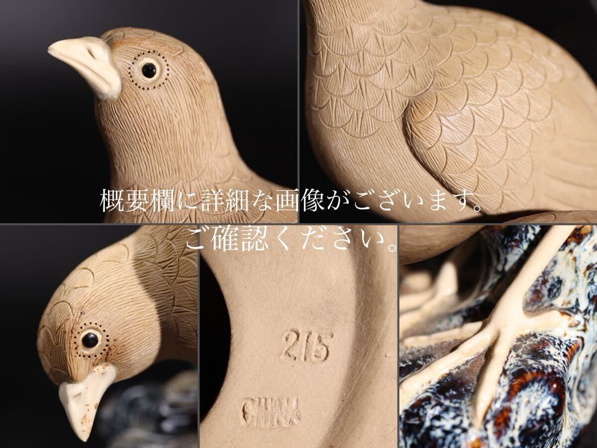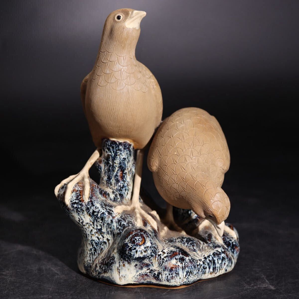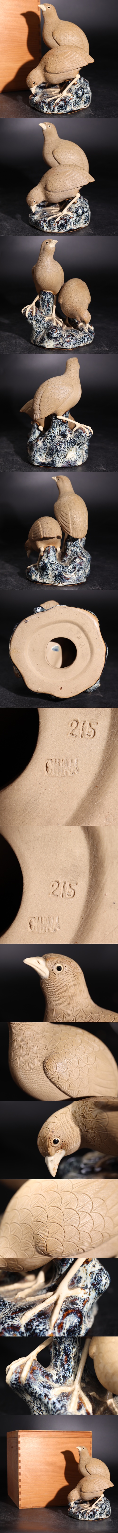 | 時代 在銘 陶器製 鳥 置物 木箱付 / 煎茶飾 細工物 検索: 白泥 海鼠釉 中国 .G2625 |