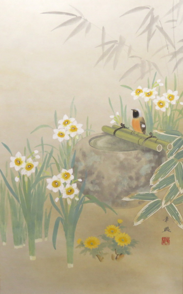 商品説明 | JY1388◆◇掛軸 出口華鳳 水仙 尺五立 現代作家新作掛軸◇◆早春 普段掛け 日本画 作品説明: ≪ サイズ ≫(若干の誤差はご了承ください) 表装サイズ: 縦 190 × 横 55.5 cm 本紙サイズ: 縦 108 × 横 42.5 cm 本紙材質: 紙本 軸先材質: 陶器 表装:大和表具 三段表装(行) 裂地:一文字・風帯 - 花文合金襴 中廻 - 花文緞子 ≪ 状態 ≫ 新作描き下ろしです(新品) ≪ 箱行・鑑定・付属品≫ 共箱 |