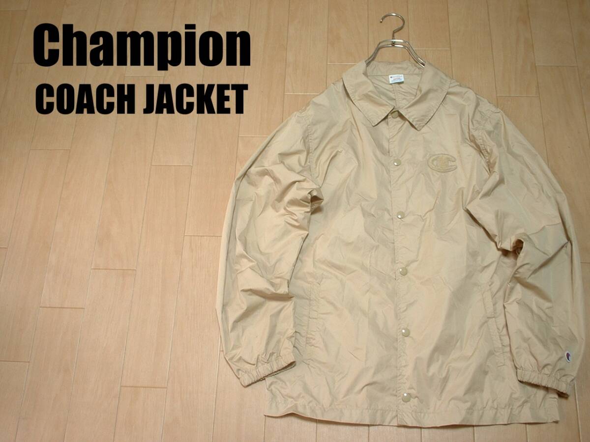 Championビンテージ復刻コーチジャケットMベージュ正規C8-M612チャンピオンアワードナイロンカバーオール単色トリコタグランナーズランタグ