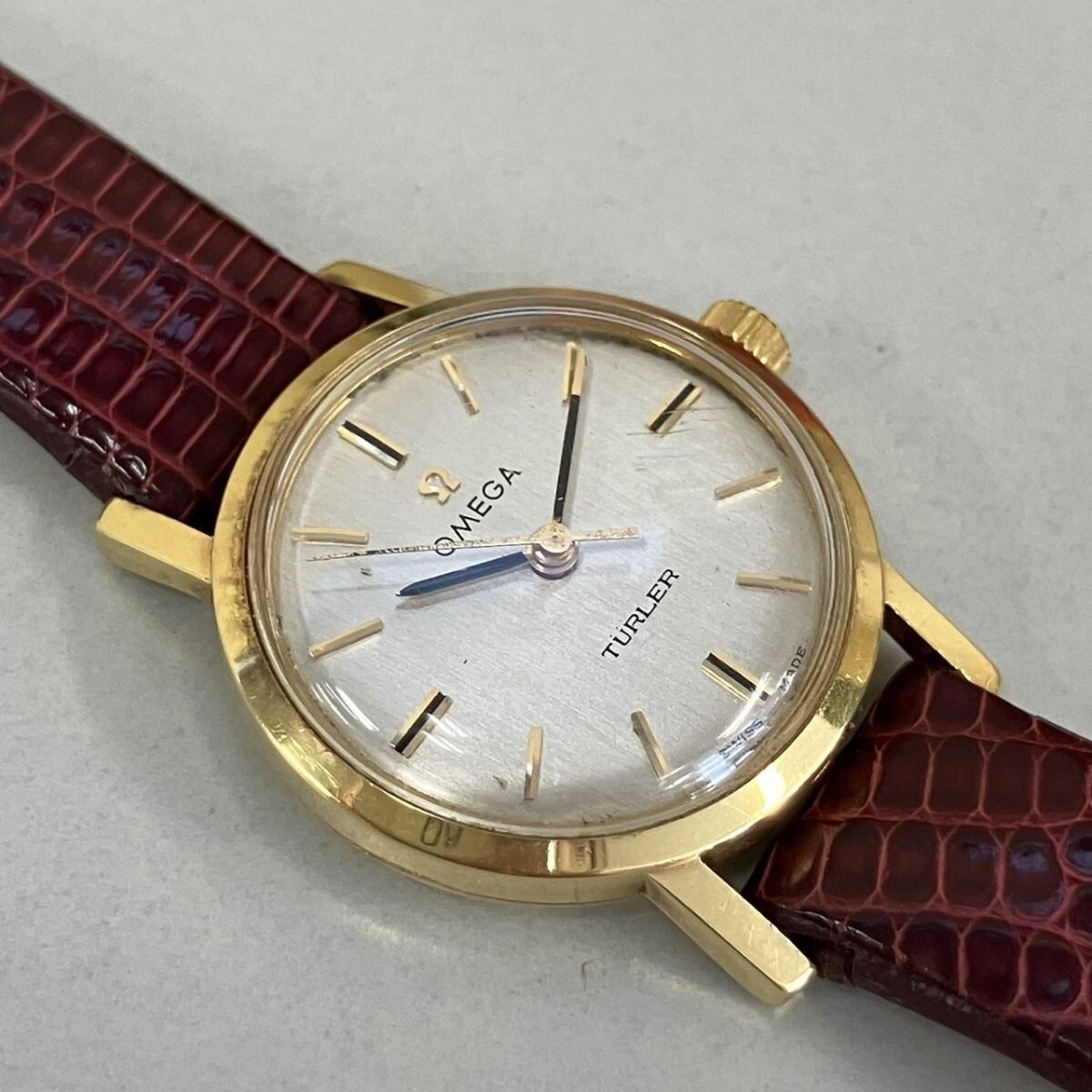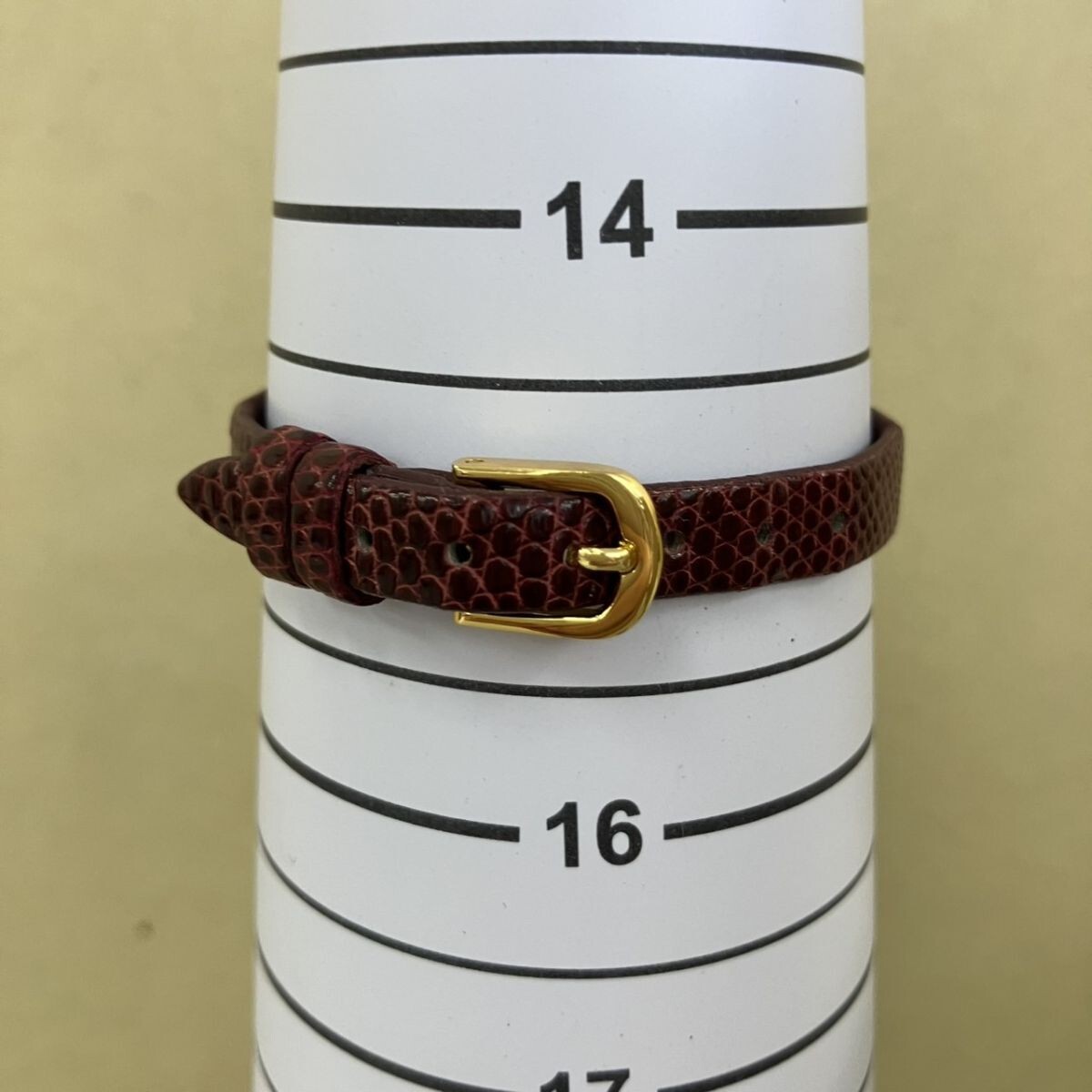 取り扱っている商品は未使用・未開封も含め、全て一度は人の手に渡った一点ものの中古・ジャンク扱いでの商品です。 当方素人ですので肉眼で確認できる簡易的な検品、採寸、および簡易梱包となります。 通電確認済み、動作確認済みの記載のないものは、動作未確認、動作不可の商品となりますので、予めご了承ください。 ※稼働の記載につきましては秒針等の確認のみとなり、全体の動作を保証するものではございません。 また、出品時の中古品の動作状況となりますので、予めご了承の上でご入札ください。 不動の表記につきましてはクォーツ式のムーブメントの場合、動作未確認の状態となります。 電池交換後、不具合があった場合でも返金、返品の対象とはなりませんので、予めご了承くださいますようお願い致します。 細かな日差、オーバーホール状況、社外パーツの使用に関しては保証しかねますので、ご理解いただけた上でのご入札をお願い致します。 上記を踏まえた上で中古品、ジャンク商品として出品させていただいておりますので、全てご理解いただけた上でのご入札をお願いいたします ------------------------------------------------------------------------------------------------ 【サイズ】 直径約21.7mm 腕回り約15cm 【付属品】 画像参照 【その他状態】 画像参照 不動 ----------------------------------------------------------------------------------------------- 画像にあるものが全てです。 他詳細は画像にてご判断ください。 ※目立つ傷や汚れを中心に写真を撮っておりますが、画像に写りきっていない傷等がある場合もございます。予めご了承ください。 ※商品を多数出品している関係で、稀に商品説明や画像に誤りがある場合がございます。予めご了承ください。 こちらのページをご覧いただく際は、商品説明文と掲載している画像の全てを確認いただいた上でご入札ください。 | |||||||