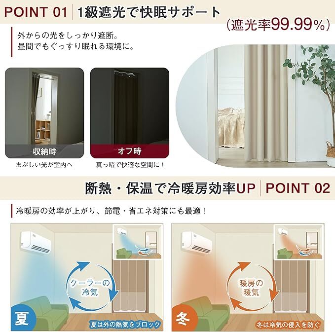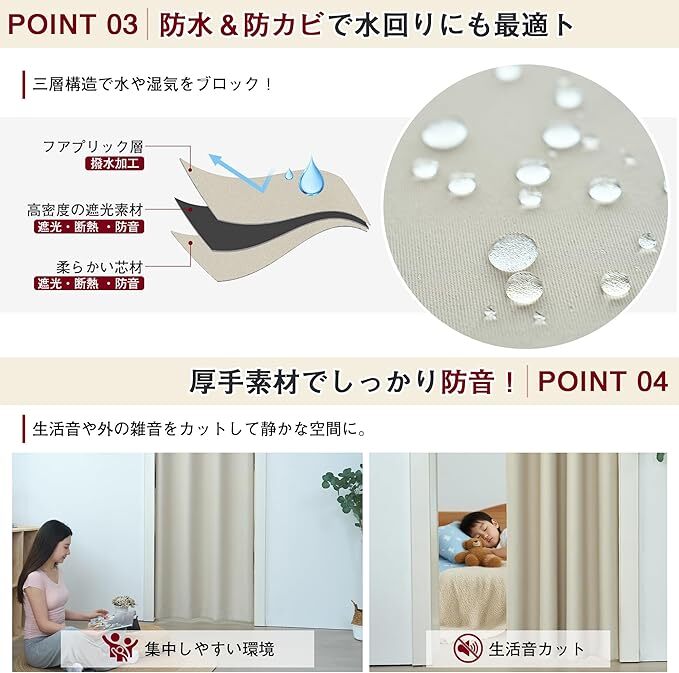 Amazon | SUGOI カーテン 遮光1級 間仕切り 突っ張り棒 断熱 仕切り ハトメ型 目隠し 取付簡単 高密度 遮像 防音 防水 防カビ ドアカーテン 脱衣所 玄関 キッチン リビング対応 タイバック付き 1枚入り (ベージュ, 150*180)