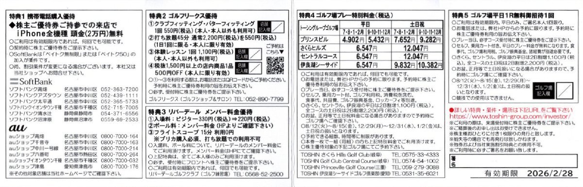 ★即決あり TOSHIN トーシン 株主優待券 ゴルフ場平日1R無料1回 1枚 2026年2月28日まで★ | |