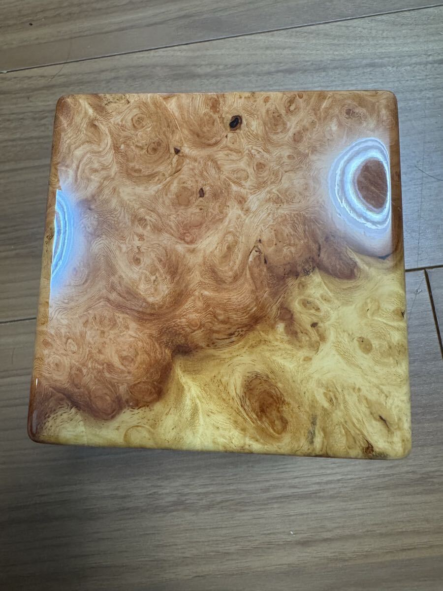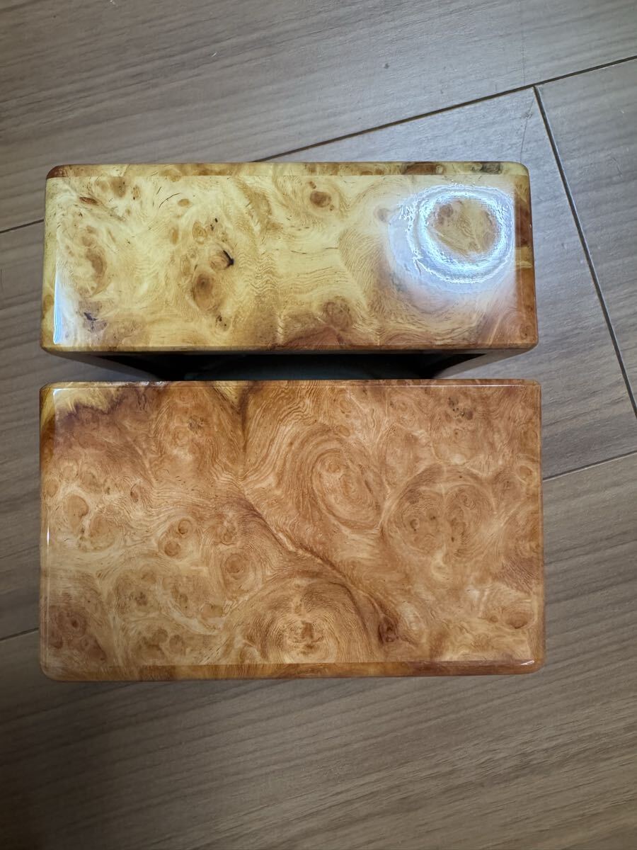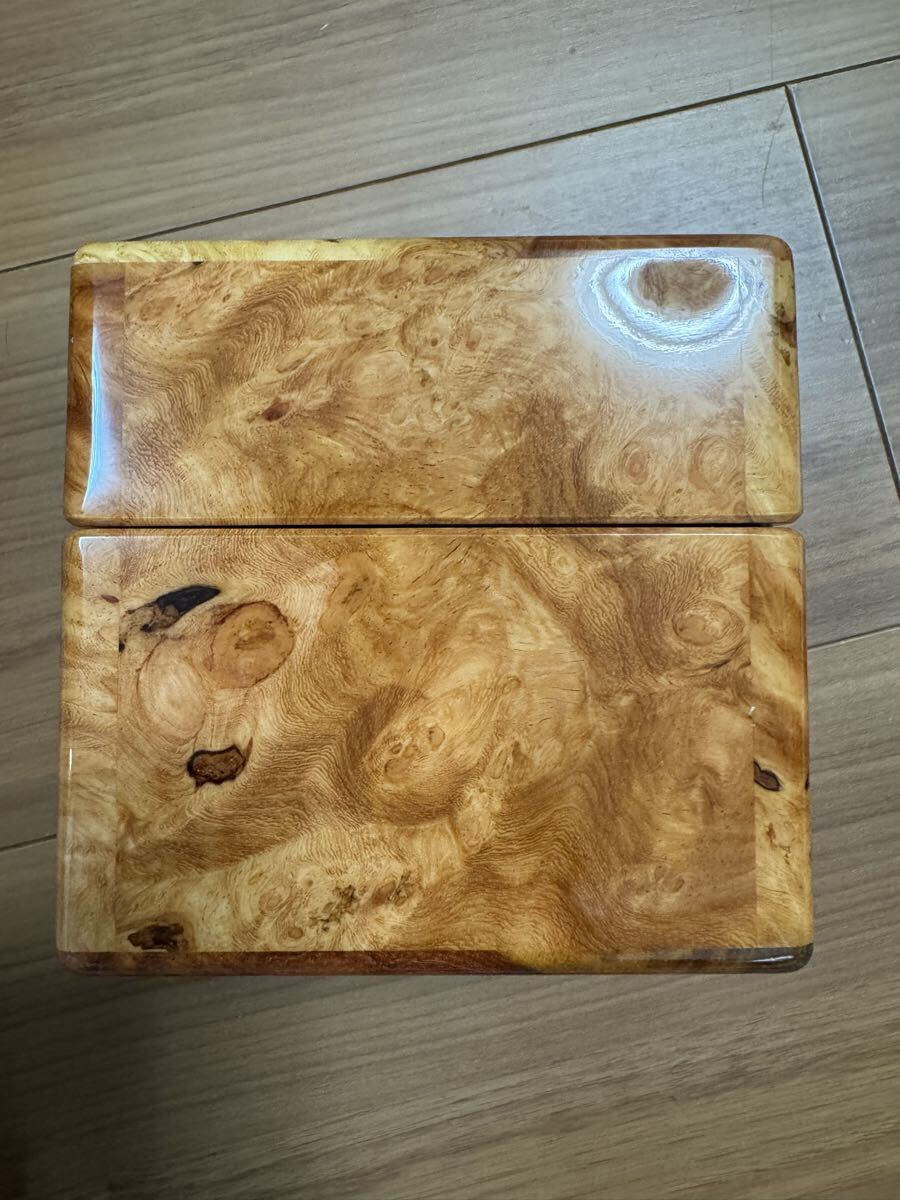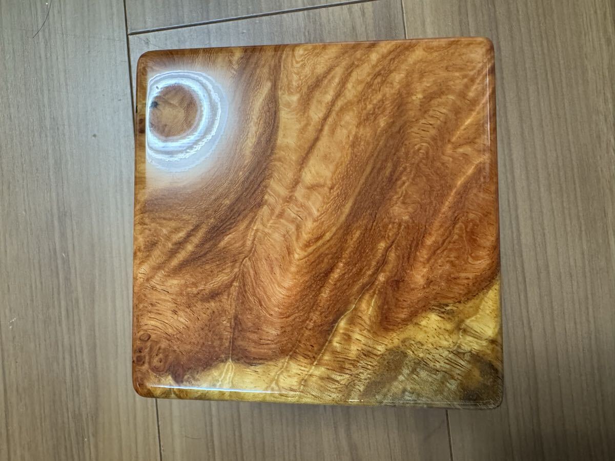 ソウルバードにて購入しました。1ヶ月くらい入れただけです。皮が非常に柔らかいので少し跡がついています。外側の花梨部分は綺麗です。写真写りが少しわるいですが、実物は大変綺麗な色になります。ノークレームノーリターンでお願いします。