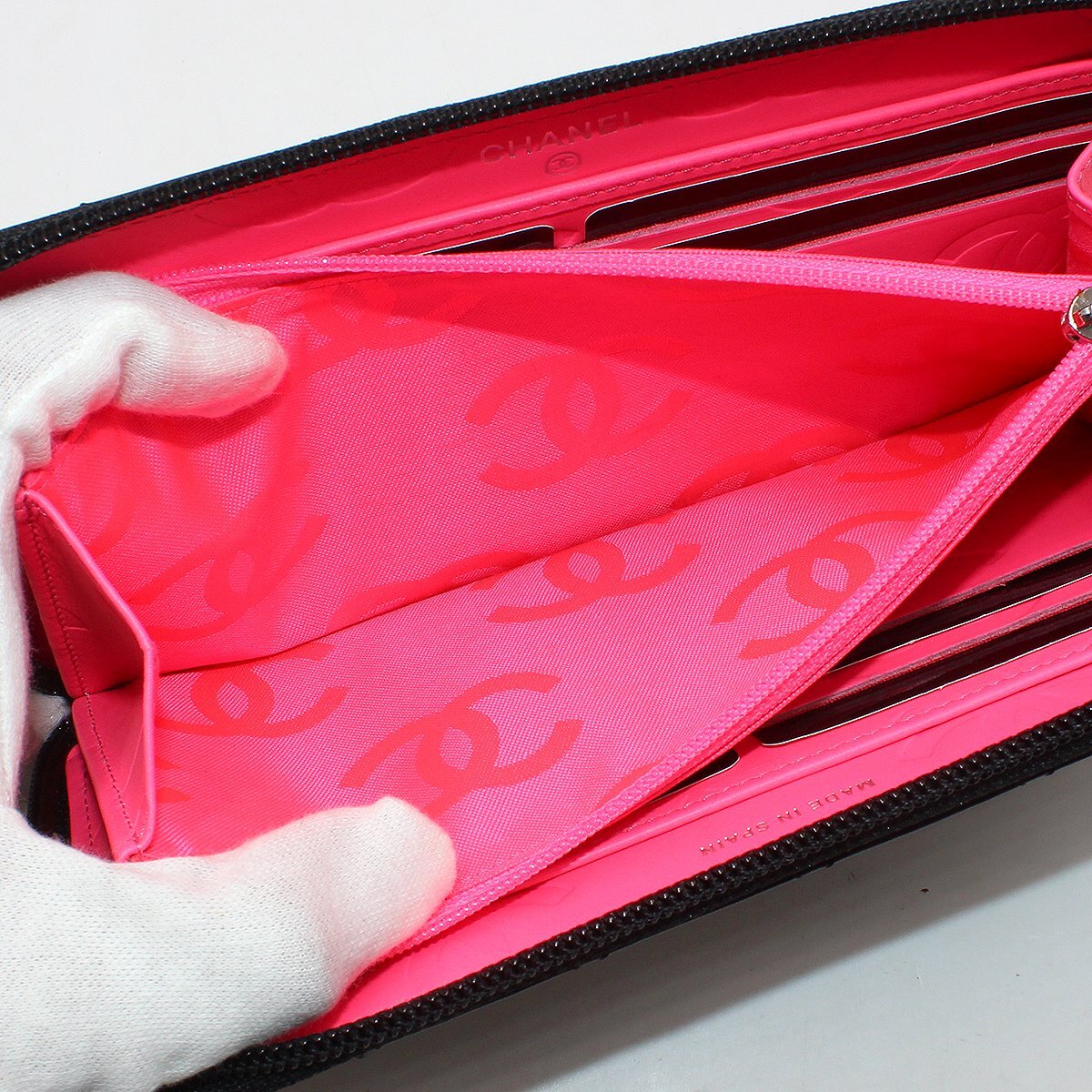 | 商品説明 | 【商品情報】 ブランド:シャネル 商品:ココマーク カンボンライン ラウンドファスナー レザー 長財布 原産国:スペイン シリアル/刻印:1636**** カラー:ブラック×シルバー金具 素材/ライン:レザー サイズ(約):W19.5 x H10.5 x D2.0 (cm) 付属品:シリアルシール・ブティックシール・Gカード・保存箱・冊子 ランク:外側 S 内側 S 【詳細説明】 外側:金具や表面に、わずかなスレがございますが、使用感のないとても綺麗な状態です。 内側:コインケースにわずかなコイン跡が見受けられますが、使用感のないとても綺麗な状態です。 *写真の色味が実物と異なる場合がございますのでご了承ください。
